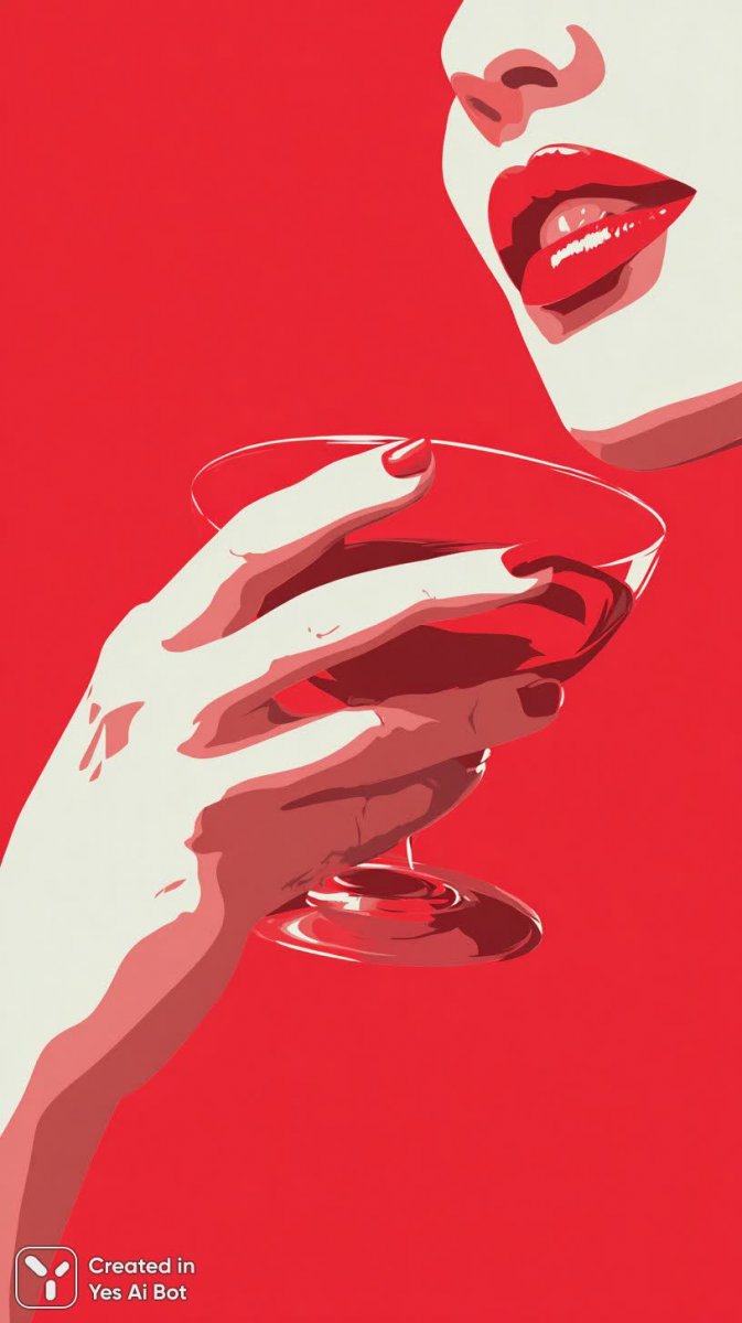Яркая графическая иллюстрация губ насыщенного красного цвета – это смелое заявление в духе поп-арта. В композиции присутствует изящная рука, держащая бокал с коктейлем, что добавляет сцене нотку гламура и соблазна. Минималистичный стиль подчеркивает лаконичность и современность изображения, а белоснежный фон позволяет акцентировать внимание на основных элементах: сочных красках и четких линиях. Вся работа пронизана энергией и динамикой, создавая эффектное визуальное впечатление. Акцент сделан именно на губах, что делает их центральным объектом внимания и придает изображению чувственность и выразительность. Это идеальный пример современного дизайна, сочетающего в себе простоту форм и насыщенную палитру цветов. Иллюстрация обладает высокой степенью узнаваемости и может использоваться для различных целей: от оформления рекламных материалов до создания стильных принтов на одежде или аксессуарах. Безупречная чистота линий и яркий красный цвет делают это изображение запоминающимся и привлекательным для широкой аудитории, ценителей современного искусства и моды. Работа выполнена в технике, позволяющей достичь максимальной четкости и насыщенности цветов, что подчеркивает её эстетическую ценность и делает её прекрасным дополнением к любому проекту. Использование белого фона обеспечивает визуальную легкость и универсальность изображения, делая его подходящим для различных контекстов и стилей оформления