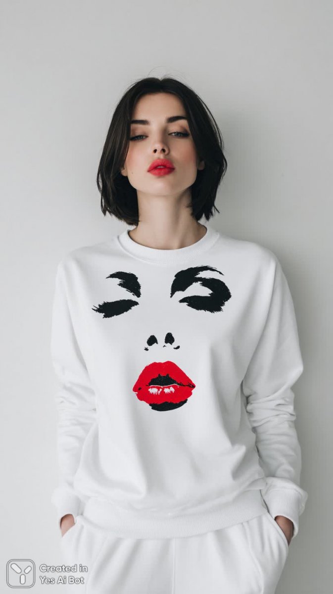 Современная мода воплощена в ярком образе девушки, чья внешность органично сочетается с динамичной городской средой. Она предстает в лаконичном белом длинном рукаве, подчеркивающем ее безупречный стиль и утонченную элегантность. Лицо модели украшает эффектный принт в стиле поп-арт, добавляющий образу дерзости и оригинальности. Черные волосы контрастно выделяются на фоне светлой одежды, а чувственные красные губы придают взгляду выразительность и загадочность. Повседневный наряд, дополненный стильными украшениями, создает впечатление непринужденной уверенности и безупречного вкуса. Яркая городская атмосфера служит идеальным фоном для этой модной фотографии, усиливая ощущение динамики и современности. Она – воплощение городского шика и смелости в стиле, демонстрируя гармонию между классикой и актуальными трендами. Этот образ вдохновляет на эксперименты с цветом и формой, подчеркивая индивидуальность и свободу самовыражения. Фотография излучает энергию молодости и уверенности, передавая ощущение безграничных возможностей в мире моды и стиля. Девушка – символ современной эпохи, где красота сочетается с практичностью, а индивидуальность ценится превыше всего. Ее стиль – это не просто одежда, это отражение внутреннего мира и мировоззрения. Это заявление о себе, выраженное через моду и эстетику