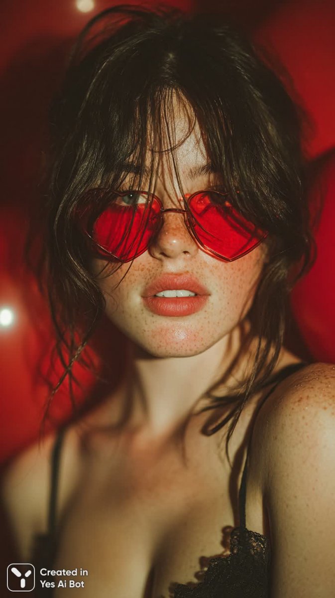 Изысканный портрет молодой женщины, пленяющий своей яркой индивидуальностью и эстетичным исполнением. Светлая кожа контрастирует с длинными темными волосами, а завершающим штрихом выступают стильные солнцезащитные очки в форме сердца насыщенного красного цвета. Выразительный макияж подчеркивает красоту глаз и губ, создавая эффектный и запоминающийся образ. Задумчивое выражение лица придает снимку глубину и загадочность. Фоном служит море алых воздушных шаров, добавляющее композиции праздничности и динамизма. Тщательно подобранное студийное освещение мягко высвечивает лицо модели, создавая игру света и тени, а эффект боке деликатно размывает фон, акцентируя внимание на главном объекте. Камера Canon EOS R5 с объективом 50 мм позволила запечатлеть мельчайшие детали и передать невероятную четкость изображения. Высокое качество снимка обеспечивает максимальную реалистичность и позволяет рассмотреть каждую деталь, от текстуры кожи до переливов в макияже. Этот портрет – воплощение современной моды, креативности и мастерства фотографа, сочетающее в себе эстетику, стиль и безупречное техническое исполнение. Идеально подходит для использования в рекламных кампаниях, модных журналах или как произведение искусства на стену