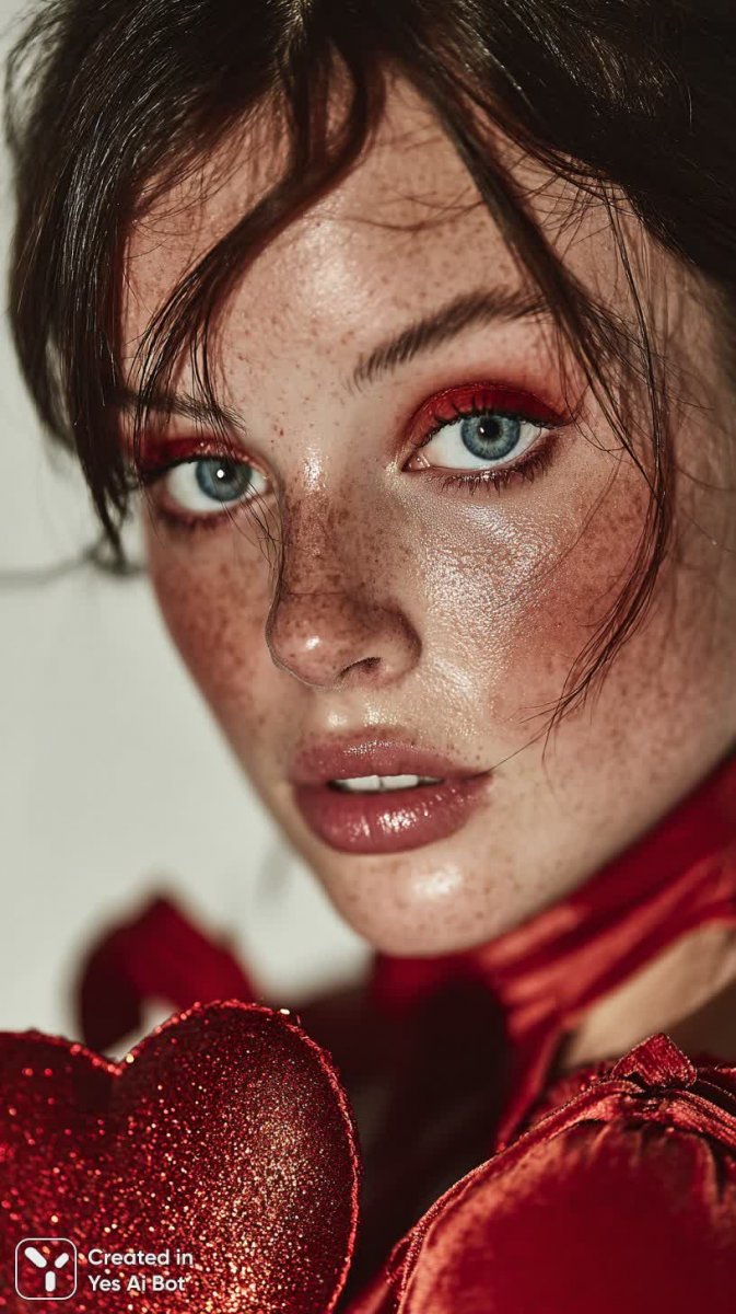 Изысканная красота в каждом пикселе: портрет женщины, чья безупречная кожа сияет в мягком рассеянном свете. Взгляд приковывает драматичный макияж с насыщенными красными тенями, гармонично перекликающийся с роскошным бордовым атласным корсетом и платьем. Держа в руках мерцающее сердце, она воплощает собой символ любви и страсти. Крупный план лица позволяет рассмотреть мельчайшие детали, подчеркивая утонченность черт и глубину эмоций. Снято на профессиональную камеру Canon EOS R5 с использованием объектива 50mm, что обеспечивает исключительное качество изображения и естественную передачу цветов. Минималистичный белый фон акцентирует внимание на модели и создает ощущение воздушности и легкости. Композиция выдержана в строгих рамках элегантности, а игра света и тени придает снимку объемность и загадочность. Это не просто фотография – это произведение искусства, запечатлевшее мгновение истинной красоты и чувственности. Идеальный баланс между классической эстетикой и современными технологиями, создающий неповторимую атмосферу роскоши и изысканности. Каждый элемент тщательно продуман, чтобы передать зрителю всю глубину и красоту момента