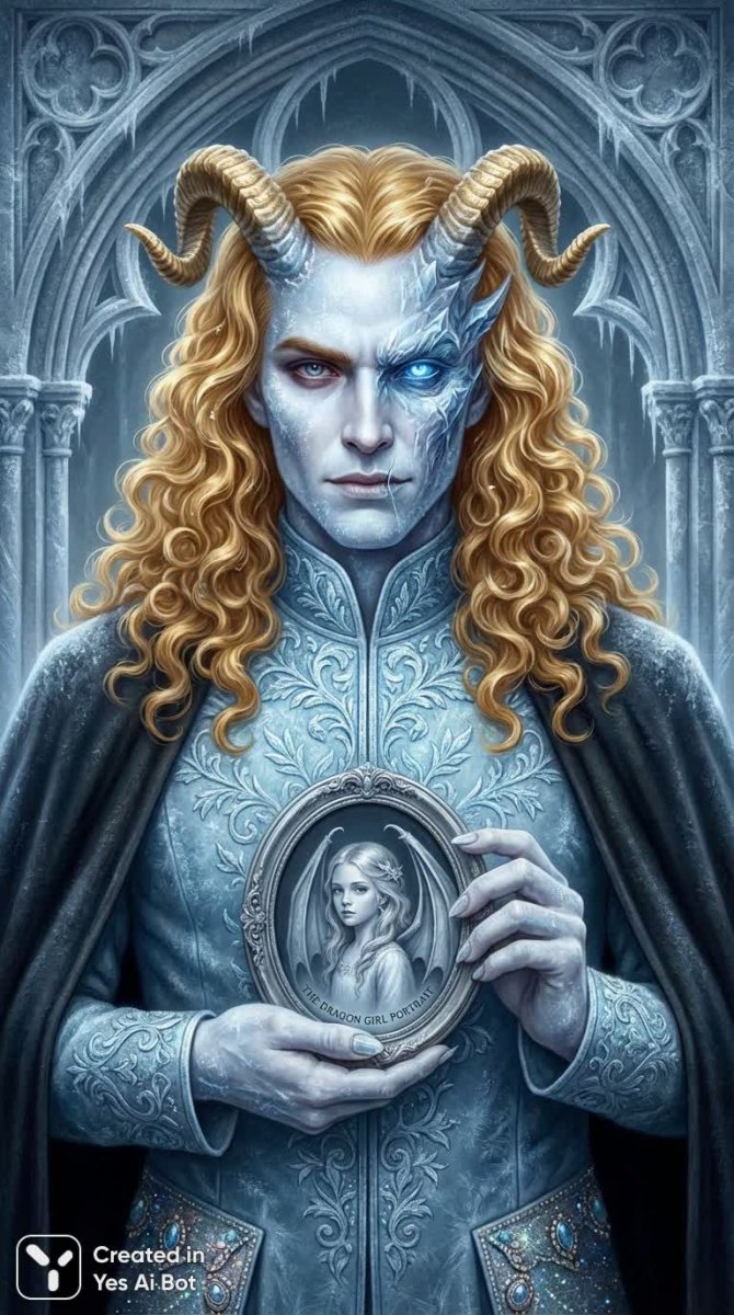 a close up of a vampire, devil, human male vampire, light blue dress, ice character, golden hair and curls, sparkly shoes, the dragon girl portrait, portrait vampire half human, artistic, double exposure, breathtaking digital art, unreal render, 1024k, establishing shot, symmetrical, beauty face.
