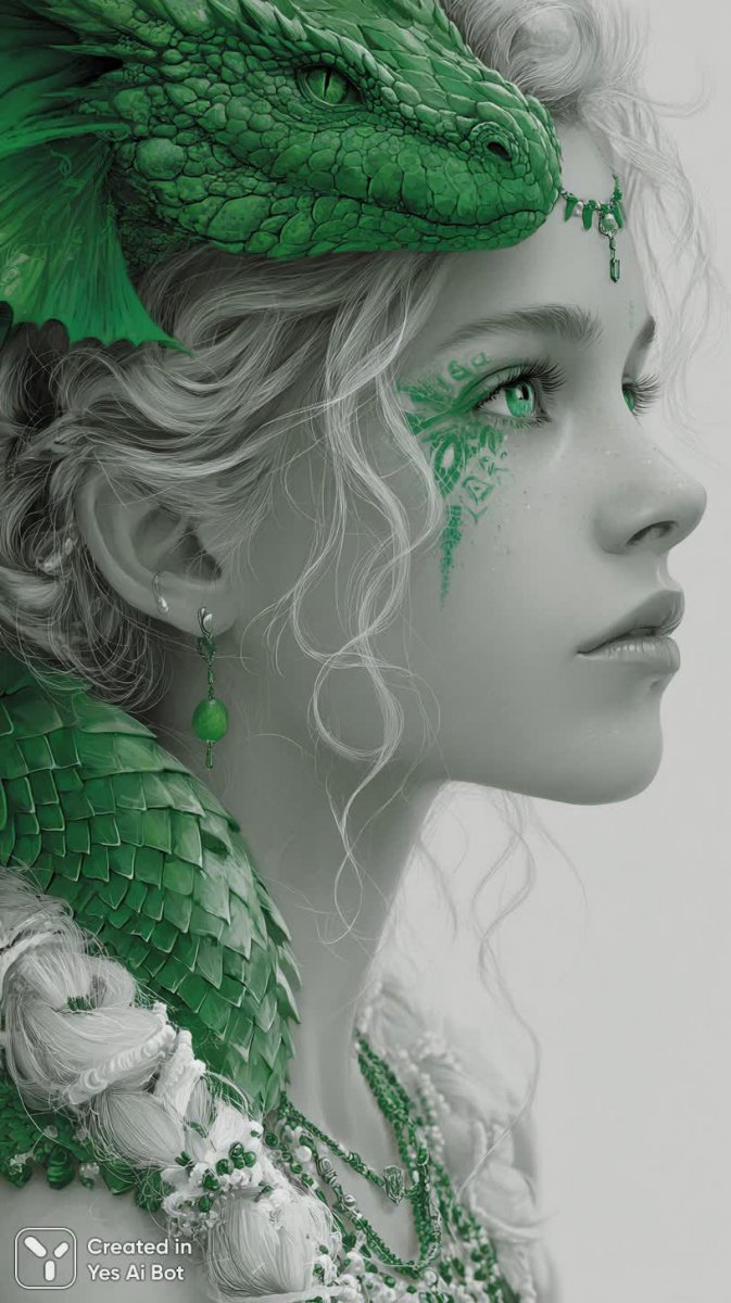 Завораживающий портрет драконьей девы – воплощение фантастической красоты и скрытой опасности. Её кожа переливается яркими изумрудными чешуйками, а неземные черты лица притягивают взгляд. Взгляд скользит по диким волнам волос, украшенных сложным кружевом драгоценностей, подчеркивающих её юность и загадочность. Техника двойной экспозиции создает ощущение нереальности происходящего, погружая зрителя в мир грез. Художественный стиль вдохновлен гением Чарли Боуэтера и потрясающими работами Артджерма, что придает изображению неповторимую атмосферу эпического фэнтези. Каждый элемент изображения тщательно проработан для передачи уникального сочетания силы и грации, опасности и очарования. Это не просто портрет – это окно в волшебный мир, где красота переплетается с первобытной мощью, а детализация достигает невероятного уровня реализма. Изображение излучает магию, заставляя поверить в существование мифических существ и далеких земель. Погрузитесь в этот мир фантазий и ощутите дыхание дракона. Это произведение искусства станет настоящим украшением коллекции любителей фэнтези и поклонников цифровой живописи. В нём гармонично сочетаются реализм, вымысел и безупречный вкус художника