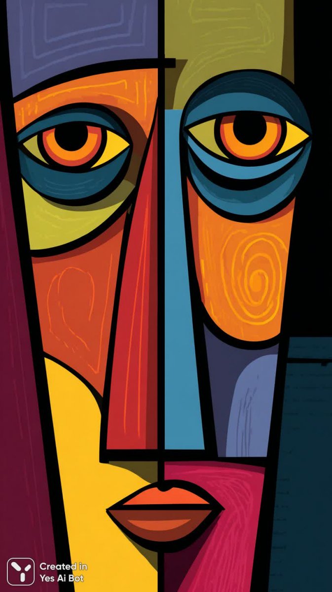 Кубизм и цвет: яркий портрет в графическом стиле - Результат работы нейросети Миджорни