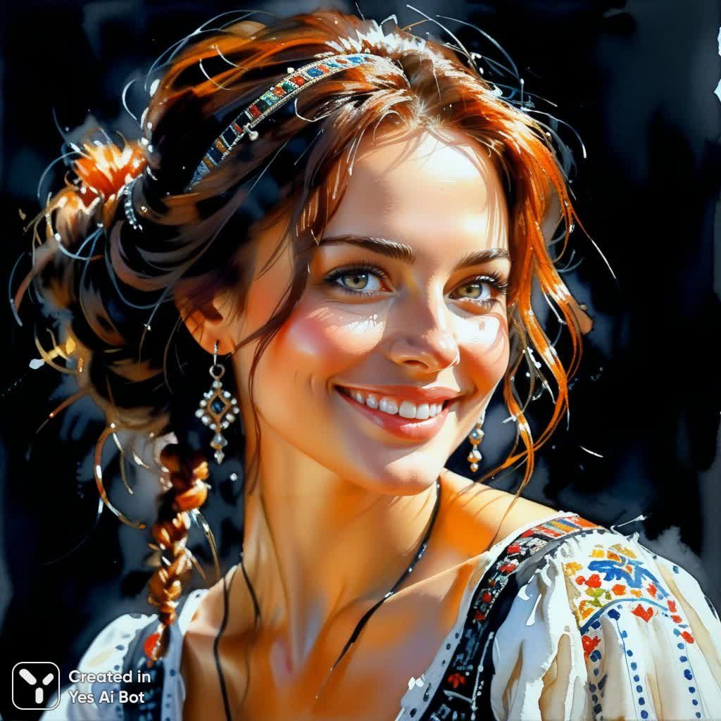 Загадочный портрет молодой женщины в технике акварели и акрила завораживает своей необычностью. На полотне изображена женщина около тридцати пяти лет с выразительными славянскими чертами лица и задорно приподнятым носом, излучающая искреннюю радость. Вместо волос у нее переплетены тонкие провода, создающие футуристический образ, который контрастирует с ее добрым и приветливым взглядом. Одежда женщины украшена сложным принтом из множества мелких букв кода, намекая на ее связь с миром технологий или цифровой информации. Ее улыбка теплая и располагающая, словно она предлагает свою помощь в решении какой-то задачи. Фон картины – глубокий черный цвет, который подчеркивает яркость и выразительность фигуры женщины, делая ее центром внимания. Стиль художника Михаила Гармаша проявляется в динамичной композиции и умелом использовании света и тени, придавая изображению особую глубину и эмоциональность. Это не просто портрет, а скорее метафора современной эпохи, где технологии переплетаются с человеческой природой, создавая уникальный и захватывающий визуальный опыт. Картина вызывает ощущение таинственности и любопытства, заставляя задуматься о роли человека в мире цифровых технологий и о потенциале взаимопомощи между людьми. Она словно шепчет нам о скрытых возможностях и бесконечных перспективах будущего