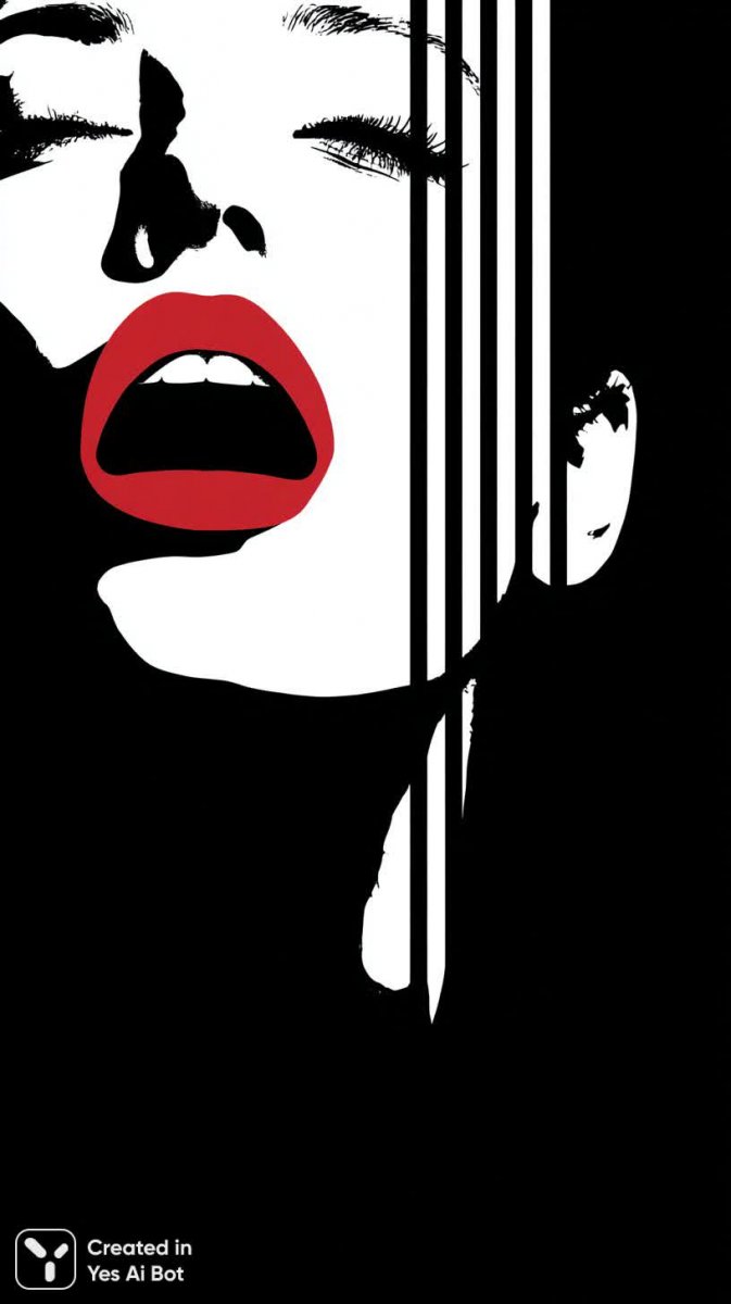 Элегантный минималистичный портрет женщины, выполненный в технике графической иллюстрации, приковывает взгляд своей дерзостью и сдержанностью. Лицо модели изображено простыми плоскими формами, создавая ощущение лаконичности и стилизации. Акцент делается на губах, подчеркнутых яркой помадой насыщенного красного цвета – смелый штрих, выделяющийся на фоне черно-белой композиции. Большая черная шляпа частично скрывает лицо, добавляя загадочности и драматизма образу. Фон представляет собой черно-белую палитру с вертикальными линиями, усиливающими эффект минимализма и создающие графическую структуру. Использование контрастных цветов – черный, белый и красный – формирует визуально привлекательную игру света и тени, подчеркивая геометрию изображения и создавая ощущение современной художественной выразительности. Эта иллюстрация воплощает собой сочетание простоты форм, смелых акцентов и элегантной композиции, идеально подходящую для проектов, требующих лаконичного и запоминающегося визуального решения, будь то дизайн упаковки, оформление веб-сайта или создание рекламных материалов. Изображение излучает уверенность, стиль и современную эстетику, притягивая внимание своей сдержанной выразительностью