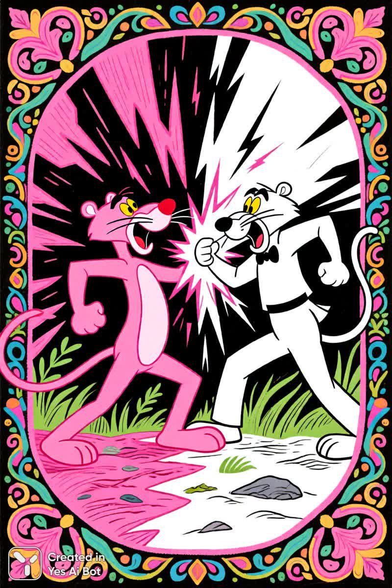 Розовая пантера: схватка стихий и буйство природной мощи в ярком рисунке - Генерация в нейросети Qwen images Ai