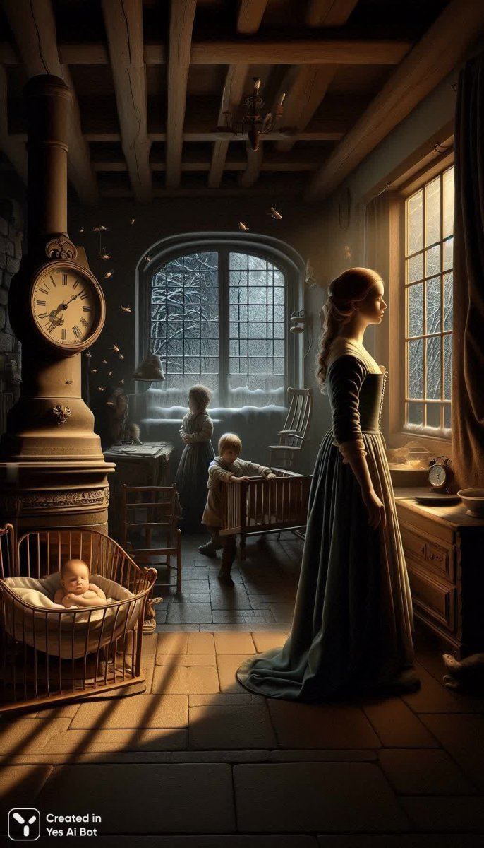 Завораживающая картина тишины и напряжения пронизывает каждый элемент этого стихотворения, создавая атмосферу гнетущего ожидания. В центре повествования - дом, охваченный странным оцепенением: жена, словно окаменевшая, не обращает внимания на мужа, дочь спит безмятежным сном в своей люльке, часы замерли над плитой, а мухи парят в неподвижном воздухе. Эта атмосфера застылости усиливается контрастом с детской непосредственностью сына, который внезапно замирает, подражая коту, спрыгнувшему со стула. Стихотворение мастерски передает ощущение невидимого присутствия угрозы, нависшей над семьей, используя детали быта для создания тревожной и загадочной обстановки. Кажется, что время остановилось, а все персонажи замерли в предчувствии чего-то неизбежного. Поэт умело использует визуальные образы, чтобы погрузить читателя в мир тишины, наполненной скрытым напряжением и нарастающим страхом. Это не просто описание сцены, это поэтический портрет застывшего момента, пронизанного ощущением надвигающейся беды. Чувство тревоги передается через статичность объектов и неподвижность персонажей, создавая эффект саспенса и предчувствия трагедии. Стихотворение оставляет после себя ощущение глубокой задумчивости и неразрешенной загадки, заставляя читателя размышлять о природе страха и неизбежности судьбы