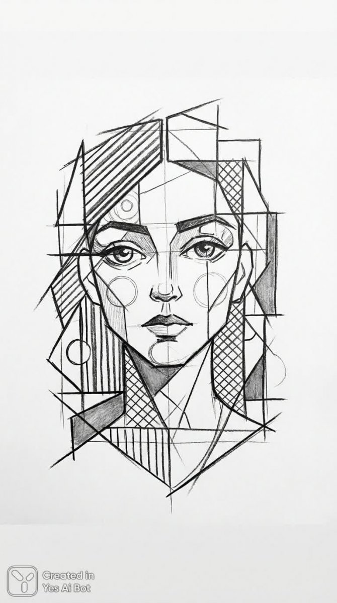 Лицо девушки в стиле кубизма, минималистичный эскиз - Пример генерации нейросети Нано Банана