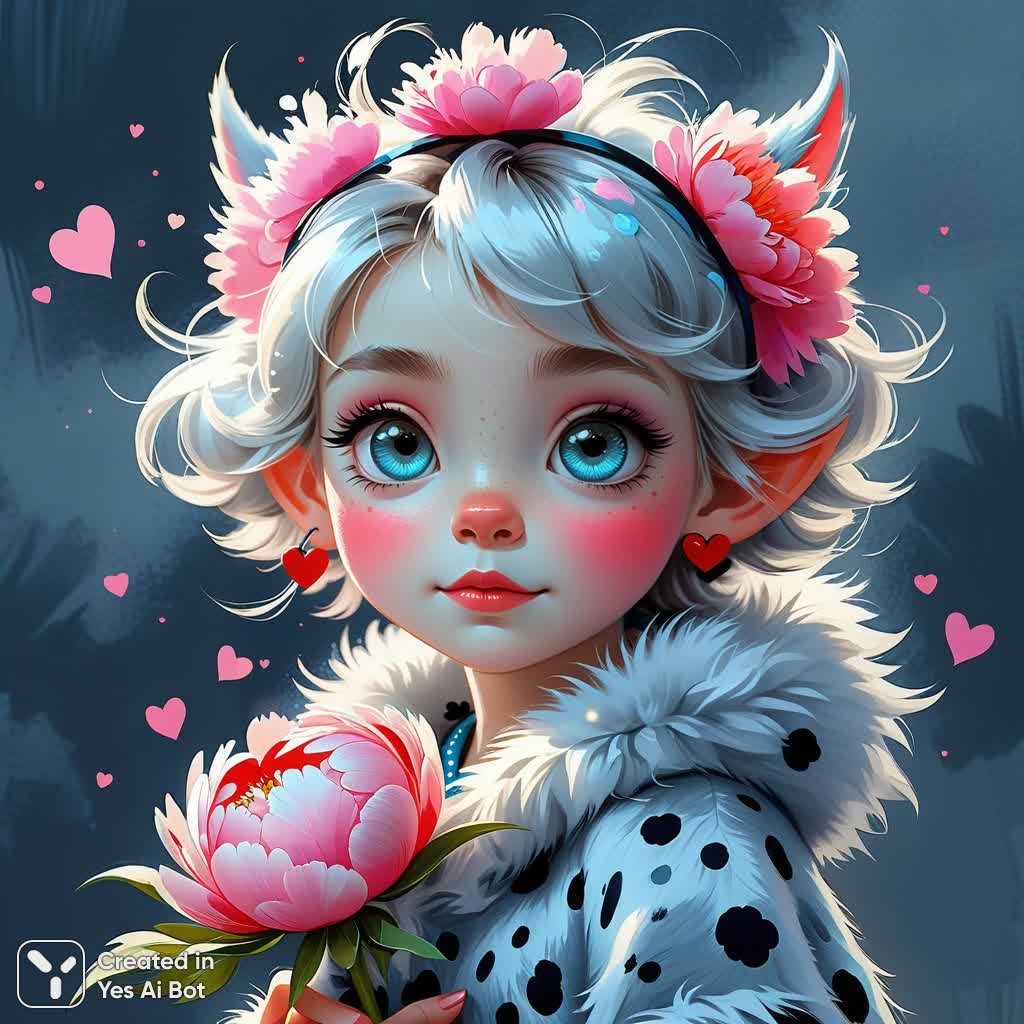 Нежная акварельная иллюстрация воплощает очарование детского рисунка и мастерство игры света и тени. В центре композиции – трогательный момент: пушистая монстря, напоминающая персонажей Туве Янссон, застыла в состоянии удивления. Её точеная фигурка, облаченная в яркую шубку в горошек с неоновым глиттером, контрастирует с серым морозным фоном, создавая атмосферу зимней сказки. Маленькая монстря, утопающая в огромном букете пионов, смотрит прямо на зрителя своими большими синими глазами, полными наивности и восторга. Детализация изображения поражает воображение: каждый пушинок, каждая сердцевина цветка прорисована с любовью и вниманием к деталям. Вид сверху добавляет ощущение интимности и близости к этому волшебному существу. Акцент на крупном плане позволяет рассмотреть мельчайшие нюансы её внешности и выразительность взгляда. Сочетание современного мультяшного стиля и акварельной техники придает работе особую легкость и воздушность, а ободок с сердечками на голове завершает образ милой и беззаботной монстри. Это произведение искусства – настоящий гимн нежности, любви и детской фантазии, способный подарить зрителям мгновения радости и вдохновения. Иллюстрация излучает теплоту и позитив, словно приглашая в мир чудес и сказок