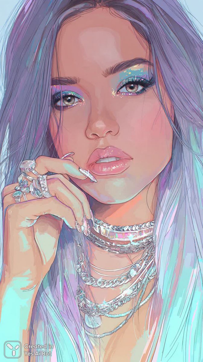 Яркий и дерзкий портрет молодой женщины, воплощающий в себе смелое сочетание моды и индивидуальности. В центре внимания – лицо модели с выразительным макияжем: графичные стрелки и насыщенные неоновые оттенки создают эффектный контраст, а мерцающие губы добавляют образу гламура и загадочности. Длинные прямые волосы служат идеальным фоном для акцентов на деталях – многослойные серебряные цепочки элегантно подчеркивают линию шеи, а сверкающие кольца и длинные блестящие ногти дополняют образ роскоши и стиля. Профессиональное студийное освещение мягко подчеркивает черты лица, раскрывая красоту кожи и глубину взгляда. Размытый фон ярких цветов создает ощущение динамики и фокусирует внимание исключительно на модели, превращая этот портрет в настоящее произведение искусства. Это не просто фотография – это визуальное заявление о свободе самовыражения, смелости экспериментировать с цветом и формой, а также умении создавать неповторимый стиль. Каждый элемент изображения тщательно продуман и выполнен с высочайшим вниманием к деталям, что делает этот портрет настоящим шедевром современной модной фотографии. Он излучает энергию, уверенность и современный взгляд на красоту, вдохновляя зрителя на поиски собственного уникального стиля и самовыражения. Этот образ – воплощение смелости, творчества и безупречного вкуса, идеально подходящий для демонстрации последних тенденций в мире моды и красоты