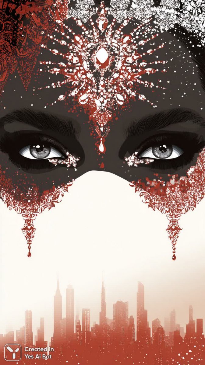 Элегантный портрет женщины, воплощающий в себе роскошь и драматизм. Лицо украшено изысканными ювелирными изделиями, а макияж представляет собой настоящее произведение искусства, выполненное преимущественно в насыщенных оттенках красного и черного цветов. Особое внимание привлекают глаза, подчеркнутые выразительной стрелкой, создающей эффект глубокого взгляда и загадочности. Фон изображения – плавный градиент от красного к белому, на котором едва угадывается силуэт городского пейзажа, добавляющий композиции глубины и контекста. Этот образ сочетает в себе классическую красоту с современной интерпретацией модных тенденций, демонстрируя уверенность и неповторимый стиль. Изображение излучает атмосферу гламура и роскоши, словно приглашая зрителя окунуться в мир высокой моды и эксклюзивности. Детализированный макияж и тщательно подобранные украшения говорят о внимании к каждой мелочи и стремлении к совершенству. Силуэт города на фоне создает ощущение динамики и современности, контрастируя с утонченностью портрета. Это не просто изображение – это визуальная история об элегантности, силе и неповторимом женском обаянии. Каждая деталь продумана до мелочей, создавая гармоничный и запоминающийся образ, который никого не оставит равнодушным. Яркие цвета и драматичная композиция делают этот портрет по-настоящему эффектным и привлекательным