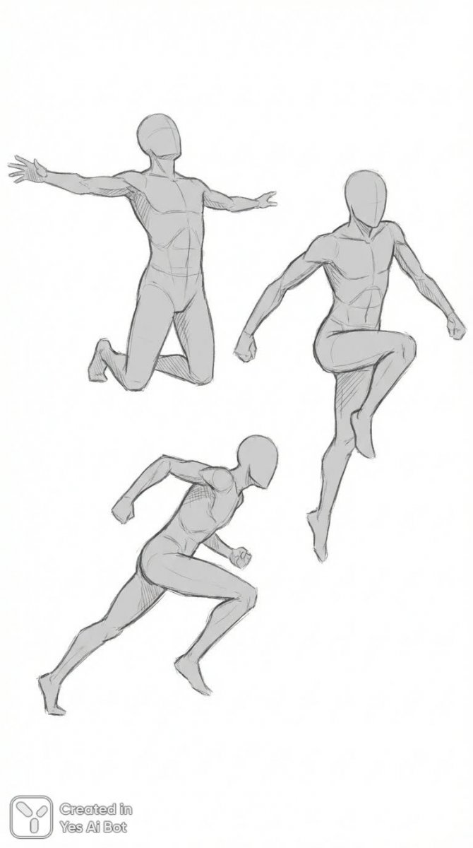Скетчи манекенов: динамичные позы и минимализм в дизайне иллюстрации - Результат работы нейросети Нано Банана