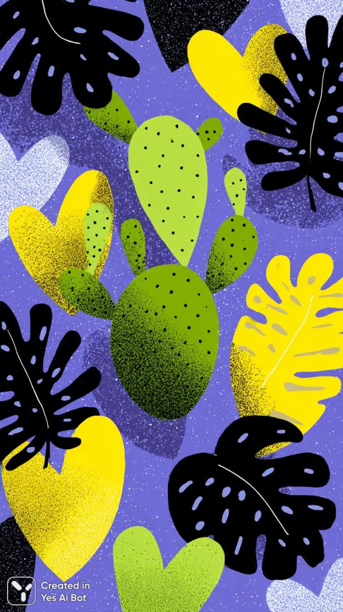 Яркий и жизнерадостный узор, наполненный позитивной энергией и оптимизмом. В основе дизайна – минималистичные формы и простые элементы, создающие ощущение легкости и воздушности. Насыщенные цвета, словно солнечный день, притягивают взгляд и поднимают настроение. Веселые сердечки символизируют любовь и нежность, а декоративные листья добавляют узору природной гармонии и свежести. Мультяшный кактус вносит игривую нотку и подчеркивает беззаботный характер композиции. Захватывающие контрасты создают динамичный эффект и делают рисунок визуально привлекательным. Этот дизайн – воплощение радости, позитива и хорошего настроения, идеально подходящий для тех, кто ценит простоту, яркость и оптимизм в окружающем пространстве. Он станет прекрасным украшением для текстиля, бумаги, цифровых носителей или любого другого проекта, где требуется добавить немного солнечного света и веселья. Узор выполнен в стиле минимализма с элементами карикатуры, что делает его универсальным и подходящим для широкой аудитории. Это отличный выбор для создания позитивной атмосферы и передачи чувства счастья и безмятежности. Дизайн не перегружен деталями, но при этом обладает яркой индивидуальностью и запоминающимся характером