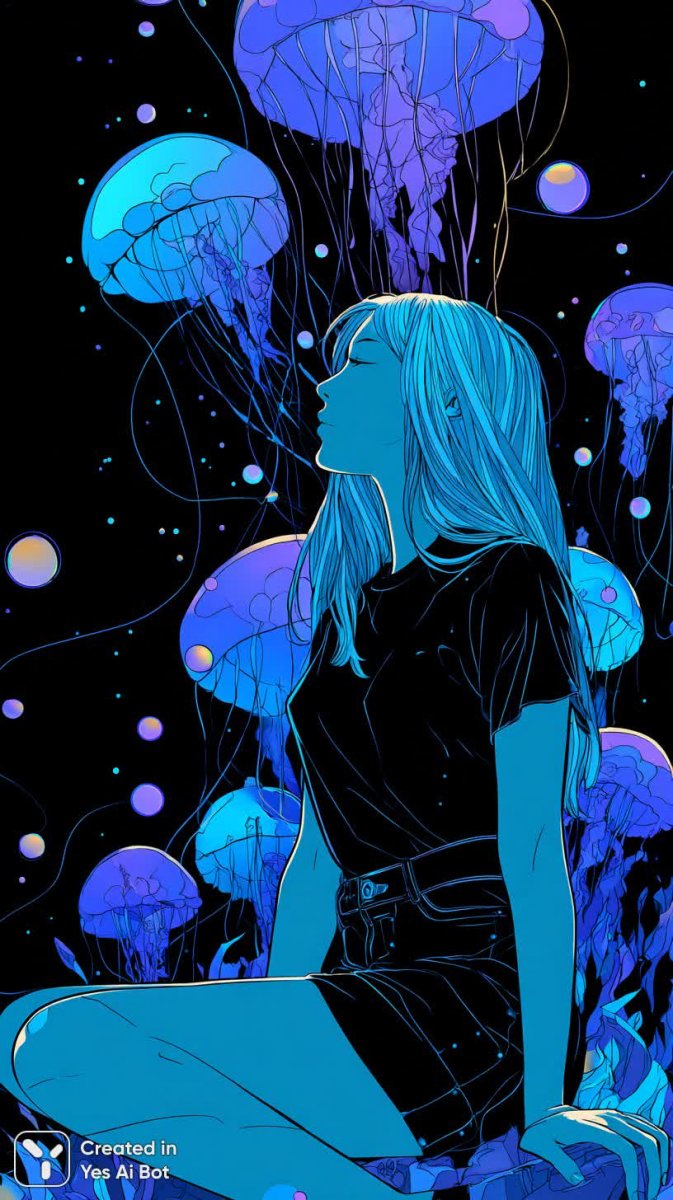 Завораживающая иллюстрация в стиле сюрреализма представляет собой футуристическую девушку-киборга, чья внешность сочетает органические и механические элементы. Её голова украшена необычным вязаным головным убором, придающим образу одновременно нежность и загадочность. Девушка парит в невесомости среди завораживающего скопления медуз и планет, создавая ощущение космического путешествия или фантастического сновидения. Чёрный фон подчеркивает контрастность изображения, а чёткие контуры придают векторному рисунку графичность и современность. Высокий уровень детализации позволяет рассмотреть каждую мелочь – от текстуры вязаного головного убора до мерцания звёзд на далёких планетах. Эта работа словно приглашает зрителя погрузиться в мир фантазий, где реальность переплетается с технологиями и сказочными образами. Использование ярких цветов и смелых линий создаёт динамичную композицию, привлекающую взгляд и вызывающую широкий спектр эмоций – от удивления до восхищения. Всё это делает картину уникальным произведением искусства, сочетающим в себе элементы научной фантастики, фэнтези и современного дизайна. Это визуальное путешествие в неизведанное пространство воображения, где возможно всё. Идеально подходит для оформления обложек книг, постеров или использования в качестве обоев на рабочий стол, чтобы каждый день наслаждаться красотой этой необычной картины