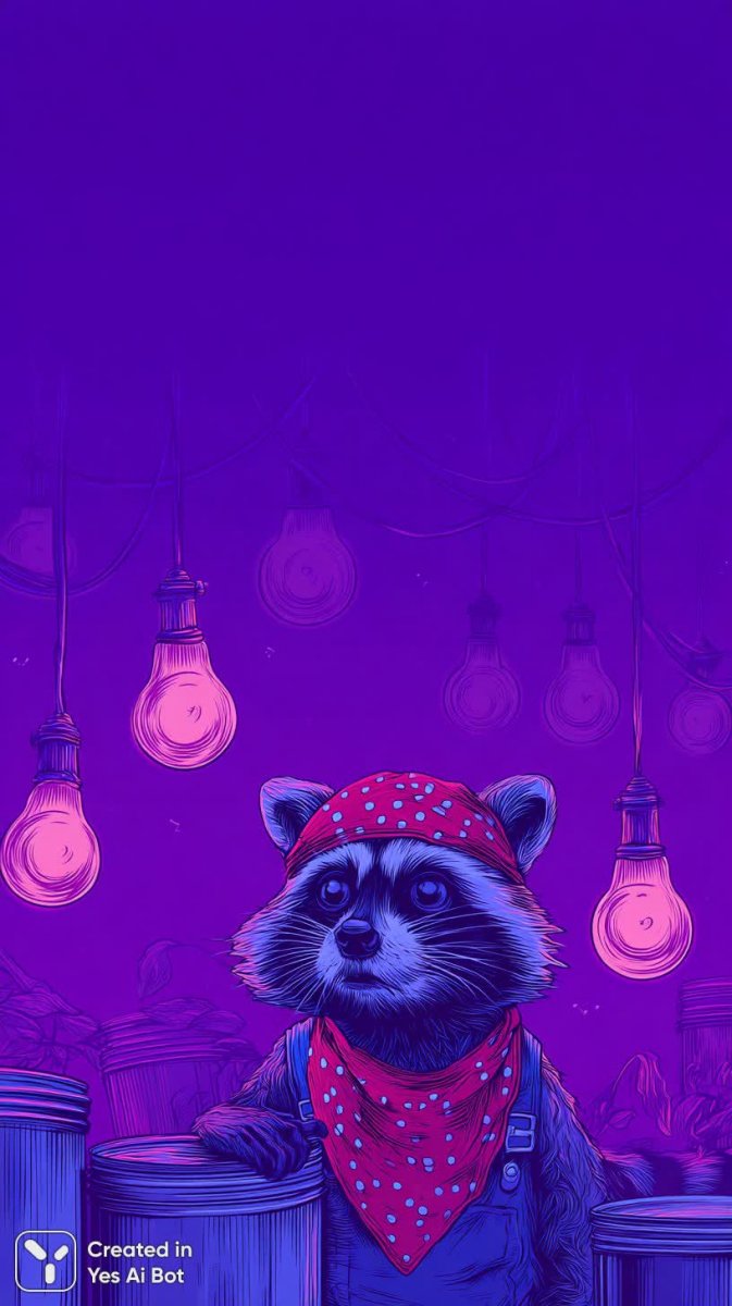 Забавный и озорной енот в ярком красном бандане и забавном жилете в горошек выглядывает из-за винтажного мусорного контейнера. Вокруг него мерцают светящиеся фонари, создавая атмосферу таинственности и веселья. Фон выполнен в насыщенных фиолетовых тонах, что добавляет картине глубины и загадочности. Рисунок выполнен в ярком мультяшном стиле с выразительными контурами и четкими векторными линиями, что придает ему современный вид. Цветовая палитра вдохновлена эстетикой начала двухтысячных годов – y2k, сочетая в себе дерзкие и необычные оттенки. Вся композиция пронизана беззаботным настроением и игривыми нотками, вызывающими улыбку и чувство уюта. Это идеальный выбор для тех, кто ценит оригинальность юмор и яркий визуальный стиль. Изображение излучает позитив и энергию, словно приглашая зрителя окунуться в мир фантазий и приключений вместе с этим милым проказником. Несомненно, эта картина станет прекрасным украшением интерьера или запоминающимся подарком для любителей забавных персонажей и креативного дизайна