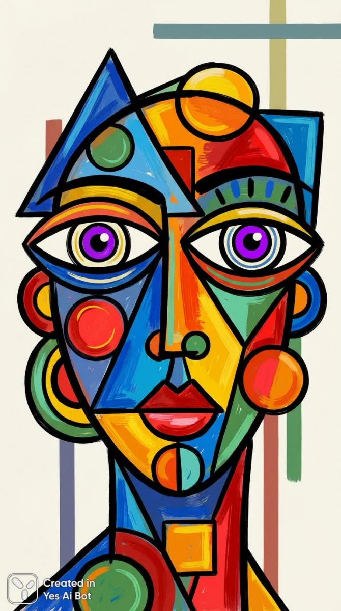 Яркий абстрактный портрет, сотканный из геометрических форм и динамичных цветовых решений, захватывает взгляд своей выразительностью. Огромные, пронзительные глаза становятся центром внимания, отражая глубину эмоций и загадочность внутреннего мира. Толстые контуры придают изображению графическую силу и четкость, создавая ощущение монументальности. Фоном служит минималистичное пространство, подчеркивающее лаконизм композиции. Вдохновение кубизмом проявляется в фрагментированности лица, словно разбитого на отдельные плоскости и переосмысленного в современной интерпретации. Акцентные вспышки ярких цветов оживляют картину, добавляя ей энергии и динамизма. В целом, работа представляет собой современное художественное произведение, сочетающее в себе элементы графики, абстракции и кубизма. Это визуально насыщенная композиция, которая призывает зрителя к размышлению о природе человеческой личности, ее многогранности и сложной внутренней структуре. Кажется, будто перед нами не просто портрет, а своеобразный пазл, состоящий из геометрических элементов, каждый из которых играет важную роль в создании целостного образа. Использование ярких акцентов делает работу запоминающейся и привлекает внимание к деталям