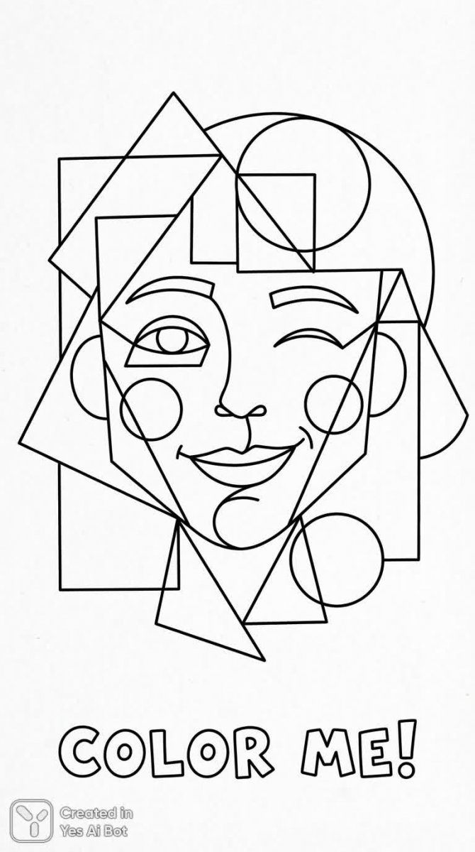 Кубистический портрет девочки для раскрашивания в минималистичном стиле - Пример изображения из нейросети Нано Банана