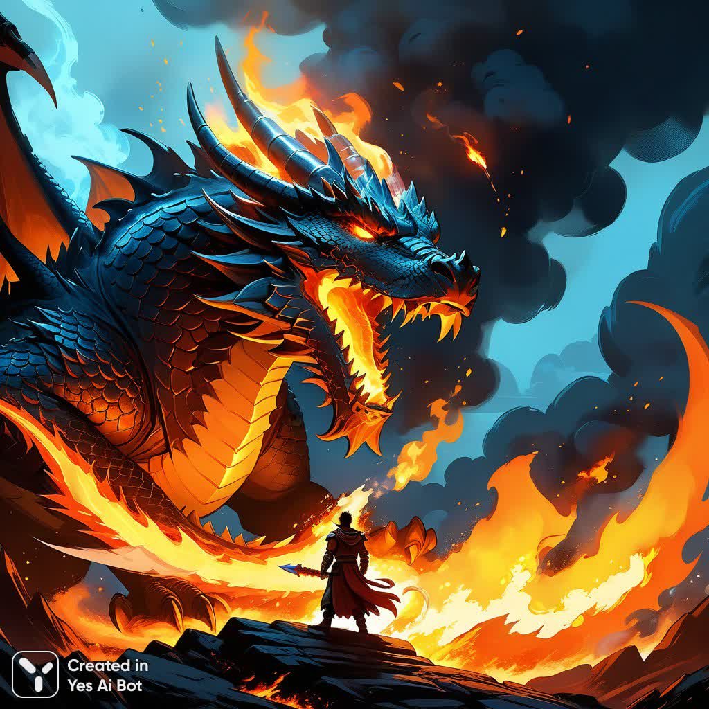 Драконье дыхание: мольба о спасении в огне и пламени - Пример изображения, созданного ИИ Stable Diffusion