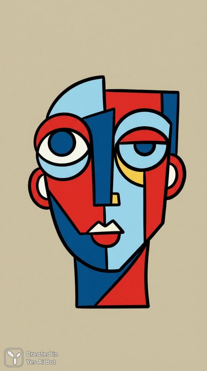 Яркое абстрактное лицо, деконструированное на геометрические фигуры, создает захватывающий визуальный опыт. Каждая форма тщательно подобрана и расположена, формируя узнаваемую, но в то же время загадочную человеческую маску. Выразительные глаза, занимающие значительную часть композиции, притягивают взгляд и передают глубокие эмоции, несмотря на отсутствие конкретного выражения. Четкие черные контуры подчеркивают границы фигур, создавая эффект графичности и акцентируя внимание на деталях. Сочетание насыщенных красных и синих цветов добавляет изображению динамизма и энергии, вызывая ассоциации с современным искусством и смелыми экспериментами в области дизайна. Минималистичный стиль подчеркивает чистоту форм и отсутствие лишних деталей, фокусируясь на основных элементах композиции. Фоном служит однотонная плоскость, которая позволяет абстрактному лицу полностью раскрыть свой потенциал и не отвлекает внимание от основного сюжета. Использование графических узоров привносит дополнительный слой текстуры и визуального интереса, создавая ощущение движения и глубины. Вся композиция пронизана духом современного искусства, отражая тенденцию к деконструкции и переосмыслению традиционных форм и образов. Это произведение – яркий пример того, как абстракция может передавать сложные эмоции и идеи через сочетание цвета, формы и линии. Оно представляет собой визуальный эксперимент, который приглашает зрителя к размышлению о природе человеческой идентичности и восприятия. Сочетание этих элементов создает гармоничное и запоминающееся произведение искусства, которое привлекает внимание своей оригинальностью и выразительностью