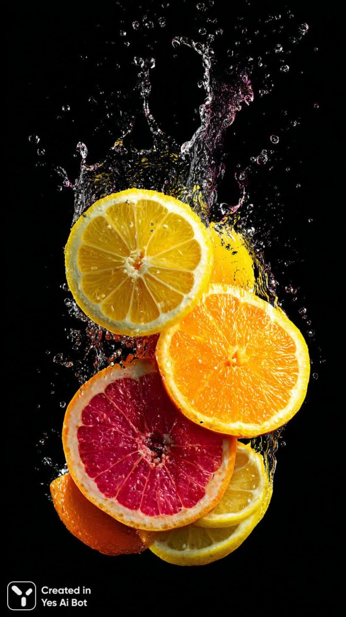 Яркая брызга сока из только что разрезанного грейпфрута пленяет взгляд своим свежим и энергичным видом. Вокруг разлетаются аппетитные ломтики цитрусовых, окрашенные в насыщенные желтые и оранжевые тона. Этот динамичный визуальный эффект достигается благодаря контрастному черному фону, который подчеркивает яркость фруктов. Использование технологии HDR позволяет передать потрясающую детализацию и красоту текстур грейпфрута и других цитрусовых. Каждая капля сока кажется живой, а игра света и тени создает ощущение объема и реалистичности. Композиция излучает позитив и бодрость, словно приглашая насладиться вкусом свежего фруктового напитка. Это не просто изображение – это взрыв цвета и энергии, запечатленный в деталях, дарящий зрителю настоящее эстетическое удовольствие. Яркие оттенки цитрусовых гармонично сочетаются друг с другом, создавая визуально привлекательную и аппетитную картину, которая пробуждает чувства и вызывает желание попробовать этот восхитительный фрукт. Черный фон служит идеальным фоном для демонстрации всей красоты и сочности грейпфрута