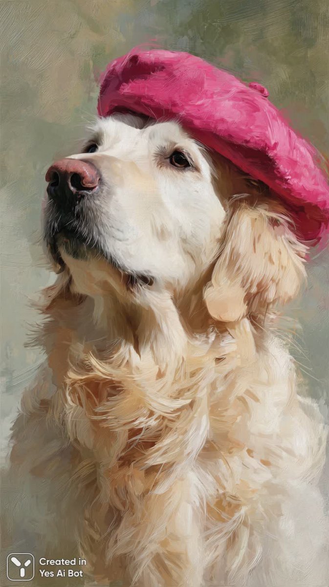 midjourney Веселый ретривер в розовой берете: милый портрет с ярким настроением. Нейросеть Midjourney