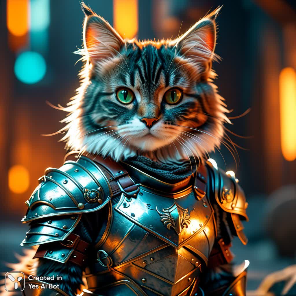 Милый котенок-воин, окутанный пушистой шерстью и облачённый в доспехи, предстает перед нами во всей красе благодаря фотореалистичной детализации в формате 4K. Каждый волосок, каждая чешуйка брони проработаны с невероятной точностью, создавая ощущение абсолютной реальности. Использование передовых технологий рендеринга Vray и движка Unreal Engine позволило добиться потрясающего качества изображения, передающего мельчайшие нюансы текстур и освещения. Стиль Midjourneyart привносит в эту картину особую художественную атмосферу, сочетая реализм с элементами фантазии и сказки. Этот котенок – не просто милое животное, а настоящий герой, готовый к подвигам и сражениям, воплощенный в цифровом искусстве на высшем уровне мастерства. Взгляд этого маленького воина полон решимости и храбрости, несмотря на его очаровательную внешность. Это произведение искусства поражает своей детализацией и реалистичностью, заставляя поверить в существование такого необыкновенного существа. Он словно сошел со страниц фэнтезийной книги или вышел из компьютерной игры, чтобы покорить сердца зрителей своим обаянием и силой. Каждая деталь его образа тщательно продумана, от блеска доспехов до мягкости шерсти, создавая неповторимую атмосферу волшебства и приключений. Погрузитесь в мир этого котенка-воина и насладитесь красотой и реализмом цифрового искусства