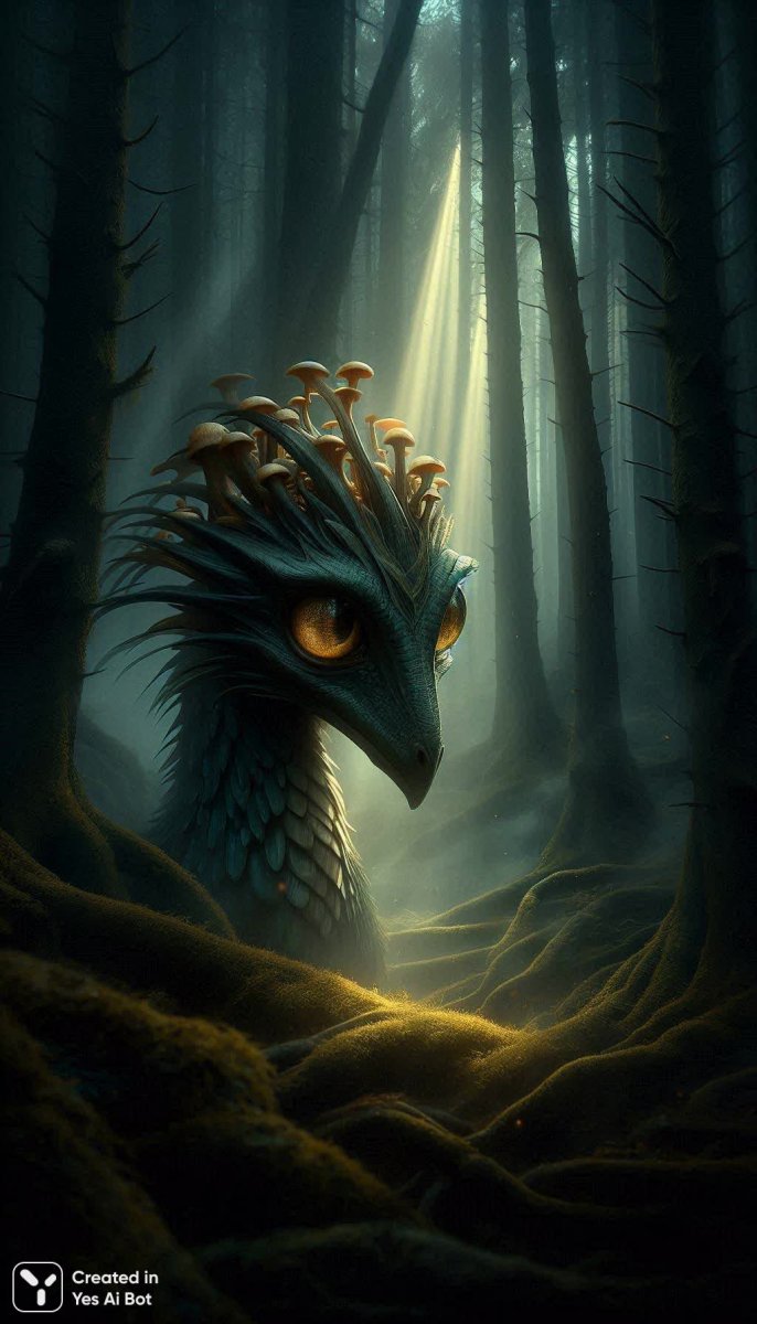 В сердце мрачного леса Глумвуд одиноко стоит Враппельмадон, его золотые глаза отражают глубокую печаль. Чешуя существа, переливающаяся всеми цветами радуги, кажется блеклой в сумерках, а его корона из светящихся грибов излучает слабый скорбный свет. Густой туман окутывает лес, создавая атмосферу тайны и меланхолии. Это завораживающее произведение искусства – иллюстрация фэнтезийного мира, где драматичное освещение подчеркивает эмоциональный портрет одинокого существа. Враппельмадон словно воплощает собой печаль самого леса, его величие омрачено грустью и тоской. Его присутствие в этой мистической чаще вызывает чувство сопереживания и заставляет задуматься о причинах его страданий. Каждая деталь – от мерцающего света грибов до туманной дымки вокруг него – работает на создание неповторимой атмосферы скорби и красоты, смешивающейся с ощущением неизбежности и загадки. Эта иллюстрация не просто изображение существа, это окно в мир чувств, где трагедия переплетается с волшебством, а одиночество становится источником вдохновения для созерцания вечной печали природы. Погружение в этот образ позволяет почувствовать связь с миром фэнтези и ощутить всю глубину эмоций, заключенных в этом трогательном портрете. Несмотря на мрачность обстановки, изображение обладает завораживающей красотой, которая притягивает взгляд и заставляет задуматься о судьбе этого загадочного создания
