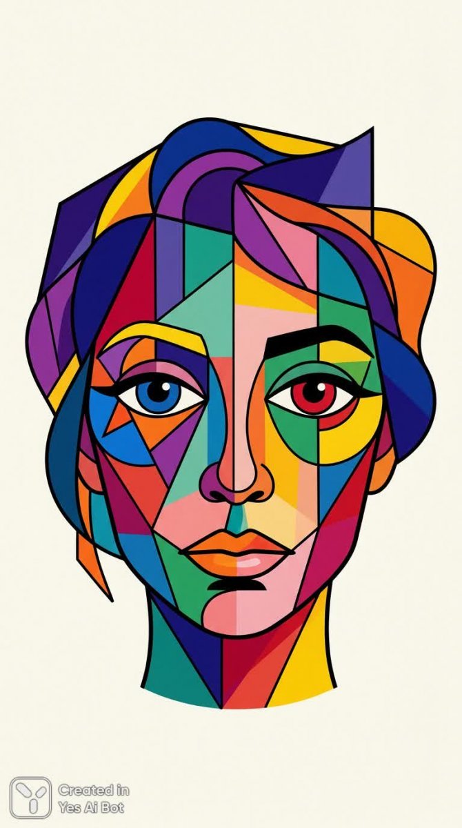 Яркий портрет: геометрия и взгляд в современном искусстве - Картинка, полученная с помощью нейросети Нано Банана