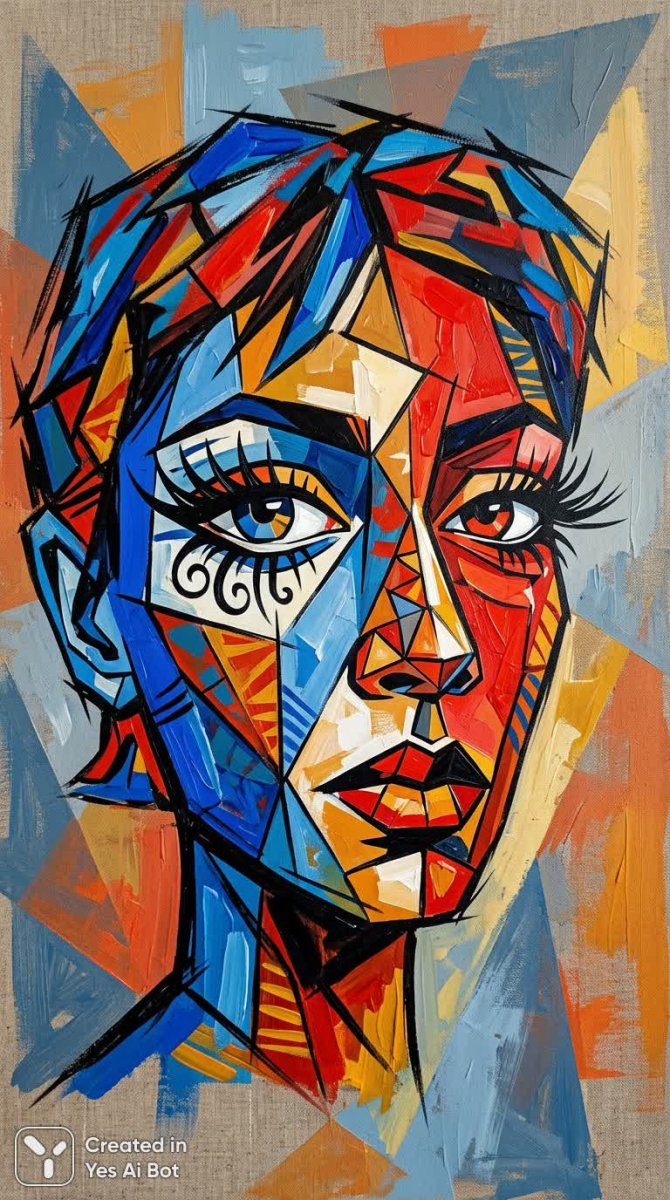 nanobanana Яркий кубизм: портрет в геометрических формах и смелых цветах. Изображение из нейронной сети Nano-Banana