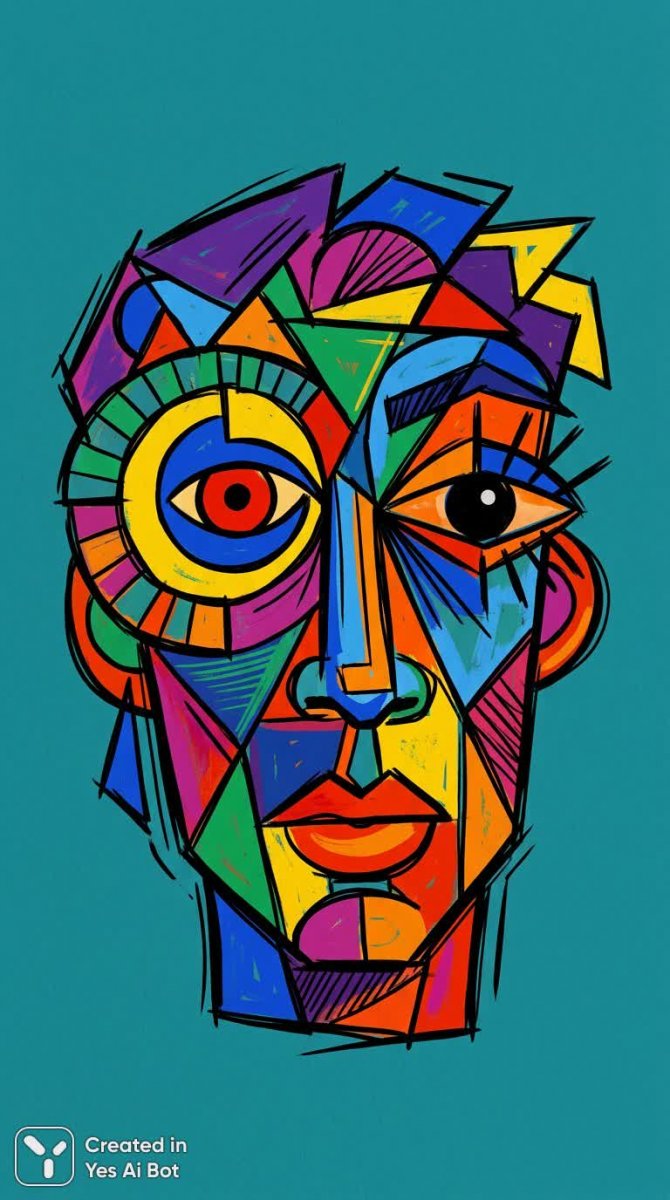 nanobanana Яркий дизайн лица в стиле кубизма с геометрией и выразительными линиями. Генерация из нейронной сети Nano-Banana