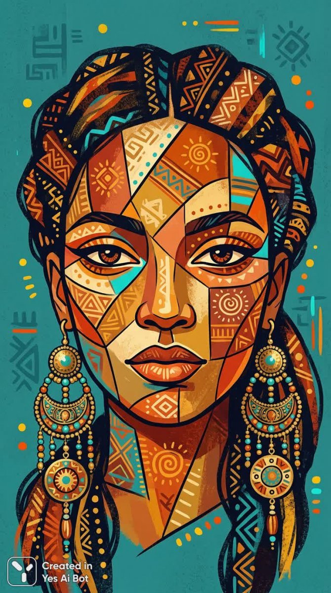 Этнический портрет: теплота символов и минимализм цифровой живописи - Картинка, созданная нейросетью NanoBanana