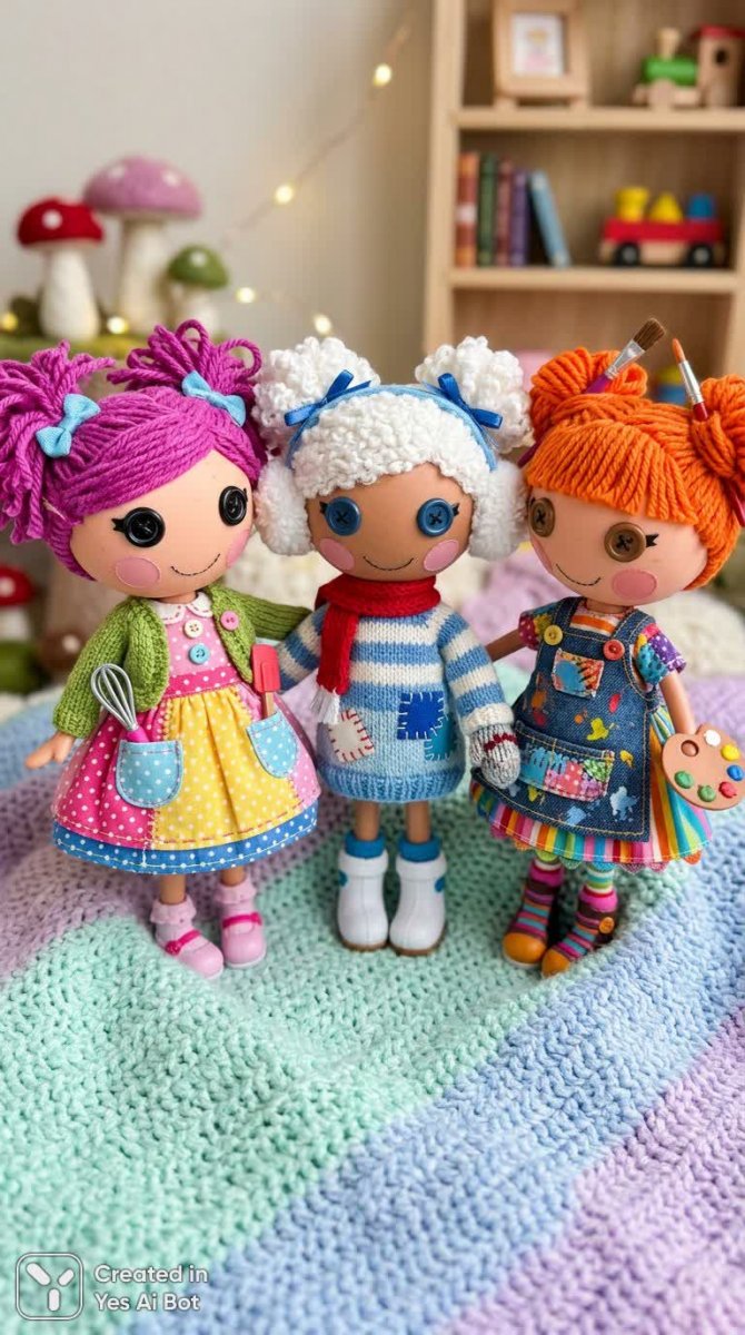 Представляем очаровательную троицу кукол Lalaloopsy – воплощение радости и безграничной фантазии! Каждая из них обладает неповторимым шармом, выделяющимся яркими насыщенными цветами и оригинальными прическами, которые словно сотканы из солнечного света. Большие пуговичные глаза искрятся весельем и любопытством, приглашая в волшебный мир воображения. Их наряды – это настоящие произведения искусства, созданные с использованием техники пэчворк, где кусочки ткани разных текстур и узоров гармонично сочетаются, образуя уникальные и запоминающиеся образы. Каждая кукла украшена забавными аксессуарами, подчеркивающими ее неповторимый характер и добавляющими игривости в общий стиль. Куклы Lalaloopsy стоят в уютном кругу, словно готовясь к увлекательным приключениям. На их лицах застыли счастливые улыбки, излучающие позитив и хорошее настроение. Мягкий пастельный фон создает атмосферу сказочного волшебства, а тщательно проработанные детали подчеркивают высокое качество исполнения каждой куклы. Теплое, рассеянное освещение добавляет уюта и создает ощущение тепла и комфорта. Эти очаровательные куклы Lalaloopsy – идеальный подарок для детей, которые любят придумывать истории, играть в ролевые игры и создавать свой собственный волшебный мир, полный фантазии и радости! Они станут верными друзьями и спутниками в самых захватывающих играх, даря своим обладателям массу положительных эмоций и незабываемых впечатлений. Погрузитесь в мир сказочной Lalaloopsy и подарите себе или своему ребенку волшебный опыт творчества и воображения!
