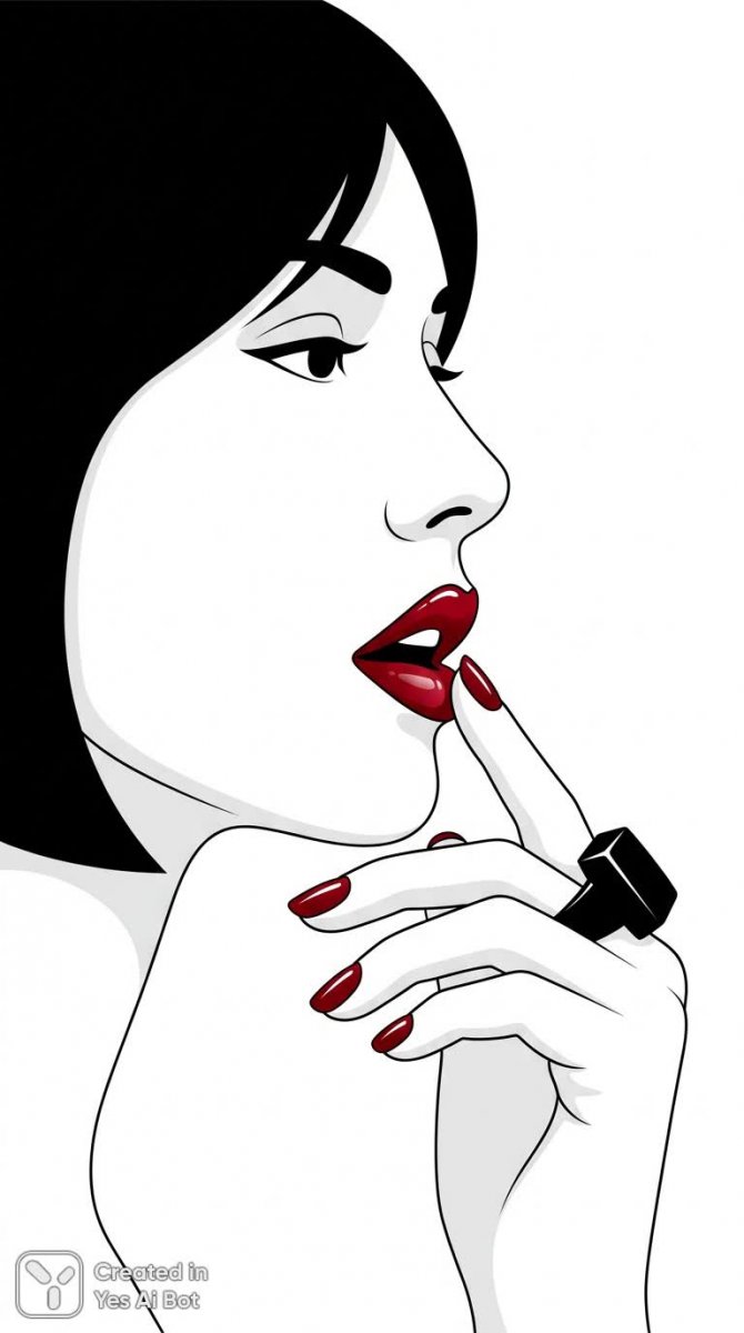 Изображение представляет собой стилизованный векторный портрет молодой женщины с фарфоровой кожей и акцентом на губах и маникюре. Открытый рот украшают ярко-розовые губы, а нежная рука слегка касается их. На изящном пальце – крупное черное кольцо, дополняющее минималистичный стиль. Фон белый, что подчеркивает детали лица и аксессуаров. Особое внимание привлекают ярко-красные ногти и глянцевые губы, выделенные направленным светом. Графический стиль придает изображению современный и лаконичный вид, создавая атмосферу спокойствия, утонченности и изысканности, отражающую принципы минимализма. Композиция использует чистые линии и контрастные цвета для создания привлекательной и запоминающейся иллюстрации, подходящей для рекламы косметики или модных аксессуаров, а также для художественных проектов, посвященных красоте и стилю, передавая ощущение уверенности и современной эстетики. Изображение создано нейросетью NanoBanana в стиле реализма с детальной проработкой.