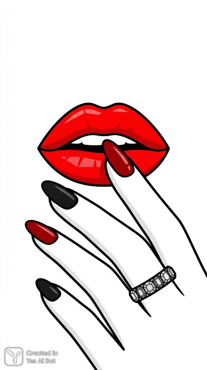 nanobanana Яркие губы и стильный маникюр: минималистичная иллюстрация в стиле поп-арт. Генерация из нейросети Nano Banana