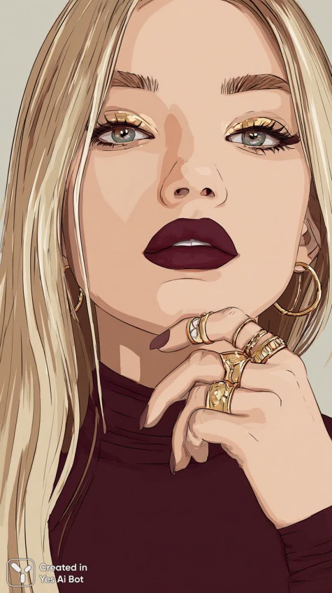 Портрет молодой женщины, излучающей уверенность и соблазнительную элегантность. Её длинные прямые светлые волосы обрамляют лицо, подчеркивая безупречный макияж. На губах – насыщенный винный оттенок помады, а глаза акцентированы смелым макияжем с золотыми вкраплениями, придающим взгляду глубину и загадочность. Густые ресницы добавляют драматизма образу, делая взгляд более выразительным и притягательным. На пальце сверкает кольцо, намекающее на утонченный вкус и статус обладательницы. Стиль фотографии – глэм-фотография, что подчеркивает роскошь и гламур. Использование студийного освещения создает мягкий и рассеянный свет, акцентирующий внимание на деталях лица и макияжа. Крупный план позволяет рассмотреть мельчайшие детали: текстуру кожи, оттенок помады, блеск в глазах. Размытый фон помогает выделить главную героиню, создавая эффект глубины и фокусировки внимания зрителя на её лице. В целом, портрет создает впечатление сильной, независимой и привлекательной женщины, которая знает себе цену и умеет подчеркнуть свою красоту. Картина словно дышит роскошью и уверенностью в себе, приглашая зрителя погрузиться в мир гламура и красоты. Эта фотография – настоящий гимн женственности и элегантности