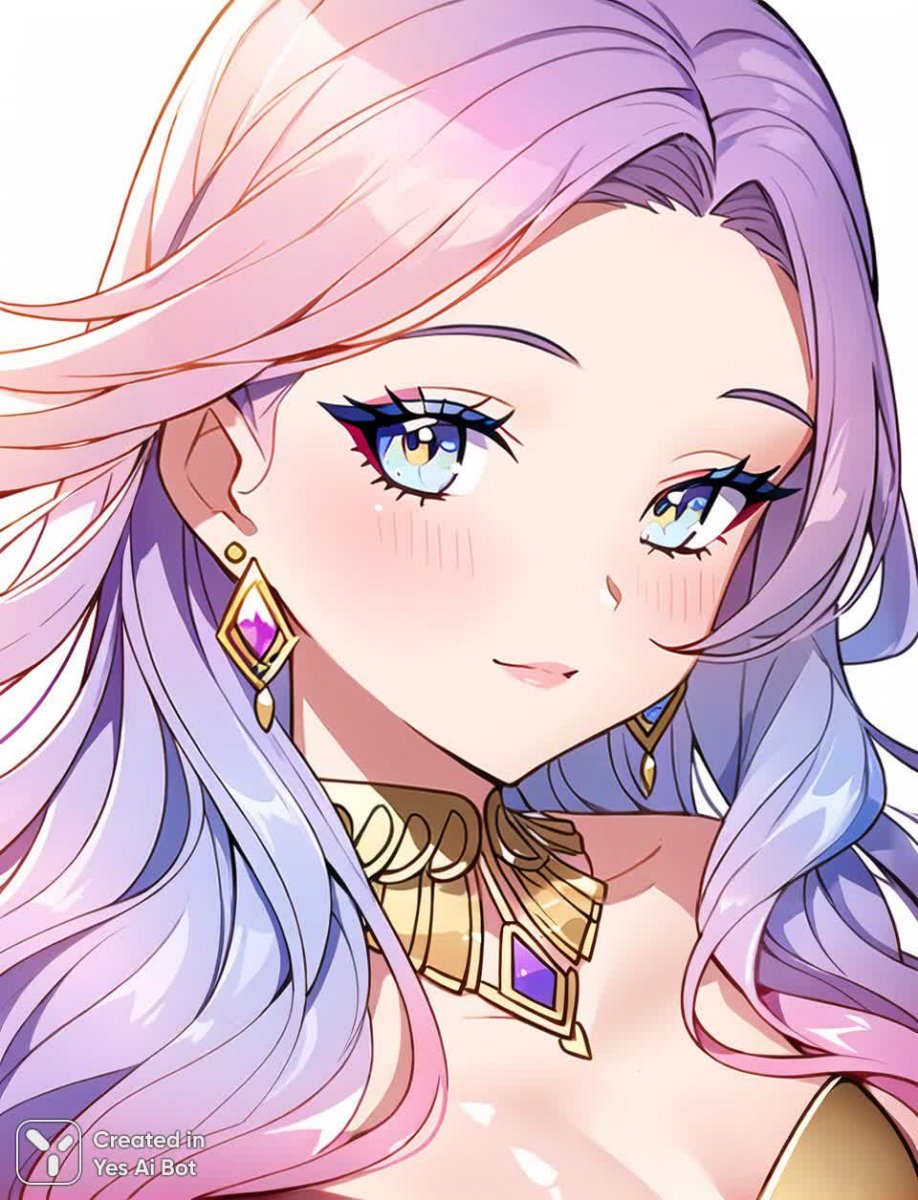 Изящный портрет молодой женщины, пленяющий своей неземной красотой и утонченным стилем. Ее длинные, волнистые волосы цвета лаванды струятся мягкими линиями, создавая атмосферу мечтательности и загадочности. Акцент в образе – яркий золотистый макияж глаз, подчеркивающий глубину взгляда и придающий лицу выразительность. Густые, объемные ресницы добавляют взгляду магнетического притяжения, а чувственные, пухлые губы, покрытые глянцевым блеском, завершают образ соблазнительной элегантности. Множество золотых цепочек, искусно переплетенных в многослойное ожерелье, и эффектные серьги служат ярким акцентом, демонстрируя безупречный вкус и внимание к деталям. Длинные, насыщенного цвета ногти, украшенные мерцающими драгоценными камнями, добавляют образу роскоши и гламура. Фотография выполнена в высоком разрешении с близкого расстояния, позволяя рассмотреть мельчайшие детали, подчеркивающие безупречность исполнения макияжа и прически. Студийное освещение создает мягкое, рассеянное сияние, акцентирующее внимание на красоте модели и придающее портрету особую глубину и выразительность. Вся композиция пронизана духом моды и стиля, создавая неповторимый образ современной богемной элегантности. Это настоящее произведение искусства, сочетающее в себе изысканность, утонченность и смелый художественный вкус