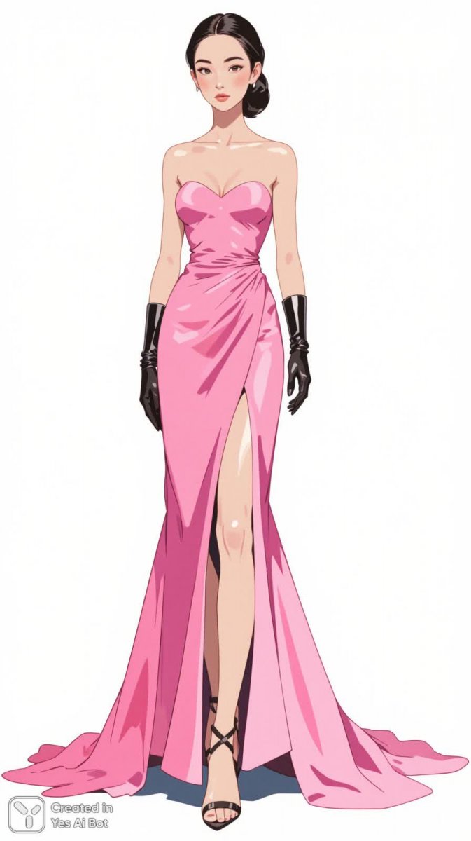 Элегантность в розовом вечернем платье с разрезом и перчатками. Картинка из нейросети Flux 1
