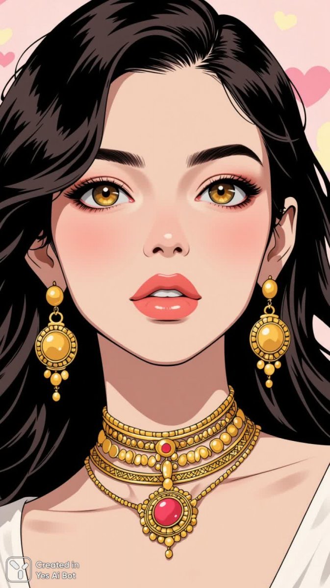 Изысканный портрет молодой женщины в стильной модной съемке, выполненной в студии с высоким уровнем детализации. В центре внимания – ее длинные волнистые волосы, обрамляющие лицо и создающие ощущение легкости и нежности. Акцент сделан на роскошных украшениях: сложный золотой гобелен из массивных и тонких цепочек, окутывающих шею, подчеркивает статусность и утонченный вкус модели. Выразительные ресницы добавляют драматизма взгляду, а чувственные, пухлые губы притягивают внимание своей естественной красотой. Фон выполнен в мягких пастельных тонах, что создает спокойную и гармоничную атмосферу, позволяя полностью сосредоточиться на деталях лица и украшениях. Эта фотография – воплощение элегантности и современной женственности, демонстрирующее мастерство фотографа в создании портретов с акцентом на красоте и роскоши. Она идеально подойдет для использования в рекламных кампаниях ювелирных брендов или модных журналов, стремящихся подчеркнуть изысканность и утонченность стиля. Каждая деталь продумана до мелочей: от текстуры волос до оттенка губ – все работает на создание единого цельного образа. Это не просто фотография, а настоящее произведение искусства, запечатлевшее момент красоты и вдохновения