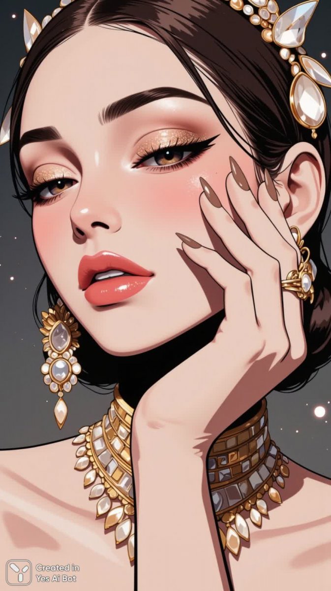 Изысканная женщина в роскошных украшениях – воплощение элегантности и утонченного стиля. Её длинные, блестящие ногти привлекают внимание, а макияж глаз с мерцающими акцентами подчеркивает глубину взгляда и создает неповторимый образ. Мягкий фокус на руках и лице позволяет рассмотреть каждую деталь – от сияния ювелирных изделий до безупречной текстуры кожи. Приглушенная цветовая гамма придает снимку атмосферу спокойствия и роскоши, а стилизованная студия создает ощущение эксклюзивности и изысканности. Высокая четкость изображения позволяет насладиться каждой деталью этого визуального шедевра, демонстрируя идеальное сочетание красоты, моды и мастерства исполнения. Этот образ – квинтэссенция женственности и уверенности в себе, излучающая ауру роскоши и безупречного вкуса. Снимок словно переносит зрителя в мир высокой моды, где каждая деталь имеет значение, а красота становится искусством. Он демонстрирует не только внешнюю привлекательность, но и внутренний шарм женщины, которая знает себе цену и умеет подчеркнуть свою индивидуальность. Это визуальное воплощение мечты о безупречном стиле и роскошной жизни
