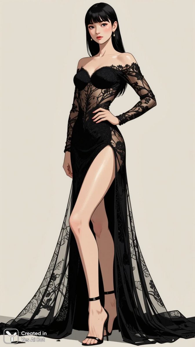 Завораживающий портрет в стиле высокой моды, выполненный с профессиональной точностью и безупречным освещением студии. Фотография, созданная на камеру Canon EOS R5 с использованием объектива 85mm f/1.2, демонстрирует модель во всей красе – уверенную позу, полный рост и вид в три четверти. Изображение отличается потрясающей фотореалистичностью и ультрадетализацией, что характерно для редакционного стиля. Акцент сделан на разнообразие типов фигуры и уникальность лиц, подчеркивая красоту каждого человека. Модель предстает в роскошном черном прозрачном кружевном платье с высоким разрезом, украшенном изысканным цветочным орнаментом. Драматичный эффект усиливается благодаря минималистичному фону, который позволяет полностью сосредоточиться на элегантности и выразительности образа. Фотография излучает силу и уверенность, являясь настоящим произведением искусства в мире моды, где каждая деталь имеет значение, а эстетика превосходит ожидания. Это визуальное воплощение изысканности и стиля, созданное для ценителей прекрасного и вдохновляющее на новые творческие свершения. Качество съемки и композиция подчеркивают профессионализм фотографа и его умение создавать запоминающиеся образы, способные рассказать историю без слов