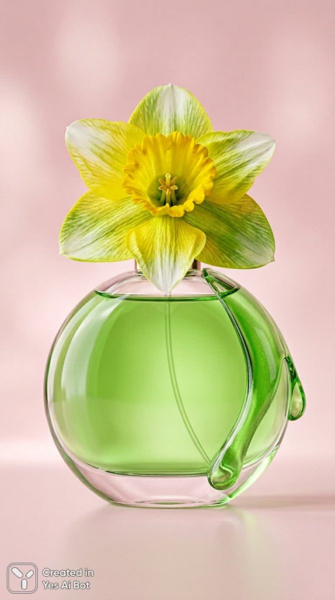 Изысканная композиция для рекламной кампании: прозрачный круглый флакон духов с изумрудной жидкостью в центре внимания. Нежная пастельная розовая фон создает атмосферу легкости и утонченности, а макросъемка подчеркивает мельчайшие детали. Капля глянцевого зеленого цвета плавно стекает вокруг флакона, добавляя динамизма и акцентируя внимание на текстуре жидкости. В верхней части композиции — крупные лепестки нарцисса, создающие ощущение свежести и природной красоты. Студийное освещение мягко подчеркивает премиальное качество продукта, а естественные тени придают изображению глубину и реалистичность. Использование объектива Canon EF 100mm f/2.8L Macro IS USM обеспечивает кристально четкую детализацию и безупречную фокусировку. Минималистичный стиль фотографии делает акцент на элегантности флакона и его содержимого, исключая отвлекающие элементы. Отсутствие текста позволяет зрителю сосредоточиться исключительно на эстетической составляющей продукта, передавая ощущение роскоши и изысканности без лишних слов. Это визуально привлекательное изображение идеально подходит для продвижения парфюмерной продукции премиум-класса, создавая ощущение свежести, чистоты и женственности. Композиция воплощает собой гармонию формы и цвета, предлагая зрителю эстетическое наслаждение и вызывая желание прикоснуться к этому миру изысканных ароматов
