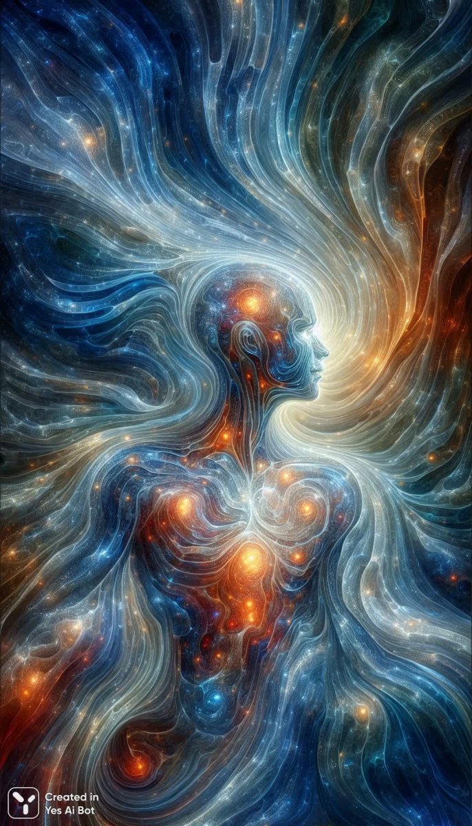 Искусственный интеллект в мерцающем облике света и ртути. Картинка из нейронной сети Dalle-3