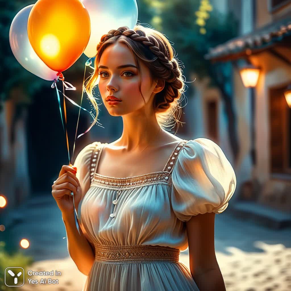 Нежная акварельная картина в технике смешанной техники сочетает в себе живописность акрила и легкость акварели. На изображении запечатлена молодая женщина с длинной коричневой косой, излучающая радость и удивление. Ее взгляд приковывает яркая, сверкающая тиара, добавляющая образу волшебства и праздничности. Легкое летнее платье-сарафан подчеркивает ее женственность и беззаботность. В одной руке она держит воздушный шар, символ детства и мечтаний, а другой прикрывает рот в выражении искреннего изумления. Размытый фон создает ощущение мягкости и нереальности происходящего. Стиль картины отсылает к узнаваемой манере Анки Журавлевой – сочетанию тонкой детализации и воздушной акварельной текстуры, что придает работе особую теплоту и очарование. Вся композиция пронизана атмосферой легкости, радости и удивления, создавая ощущение момента, запечатленного во времени. Картина идеально подойдет для тех, кто ценит нежные цветовые решения, романтичные образы и уникальный художественный стиль. Она станет прекрасным украшением интерьера, наполняя пространство позитивными эмоциями и вдохновением. Акцент на деталях, таких как коса, тиара и летнее платье, создают запоминающийся визуальный образ, который никого не оставит равнодушным. Это произведение искусства — настоящий гимн красоте, радости жизни и моменту удивления