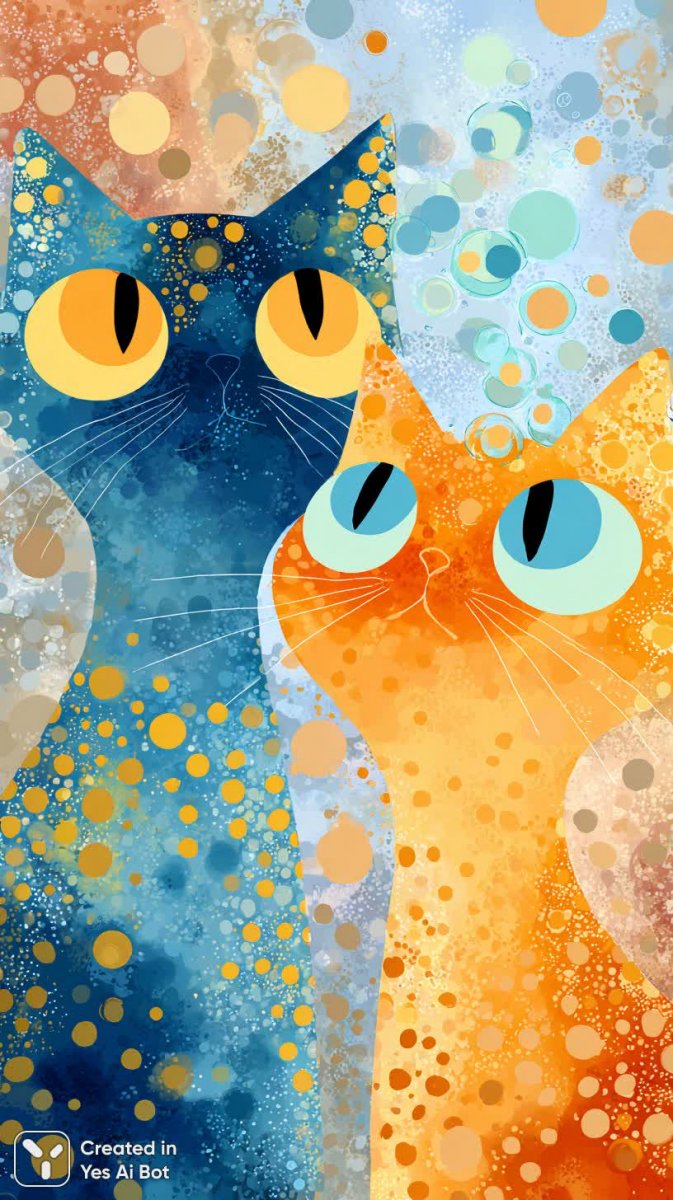 Два жизнерадостных кота, воплощение игривости и беззаботности, запечатлены в ярком мультяшном стиле. Один из них – очаровательный котёнок небесно-голубого цвета, украшенный солнечными жёлтыми горошинами, словно весенний луг на его шерстке. Второй котик выделяется своим насыщенным оранжевым окрасом с забавными красными полосками, создающими ощущение энергии и движения. Оба кота обладают огромными выразительными глазами, полными любопытства и радости, что придает им особенно милый вид. Вокруг пушистых друзей порхает множество разноцветных пузырей, переливающихся всеми цветами радуги. Эти воздушные шары создают ощущение лёгкости и волшебства, подчеркивая игривое настроение всей композиции. Фон представляет собой яркое красочное поле, усыпанное цветами – настоящий рай для кошачьих игр. Вся сцена выполнена в мягких пастельных тонах, что придает ей нежность и ощущение сказочной атмосферы. Четкие контуры графики делают изображение четким и выразительным, а игривые выражения на мордочках котят передают их безграничное счастье и веселье. Картина излучает позитив, радость и детскую непосредственность, приглашая зрителя окунуться в мир фантазий и забавных приключений вместе с этими очаровательными пушистиками. Это настоящее произведение искусства, которое способно подарить улыбку каждому, кто на него взглянет