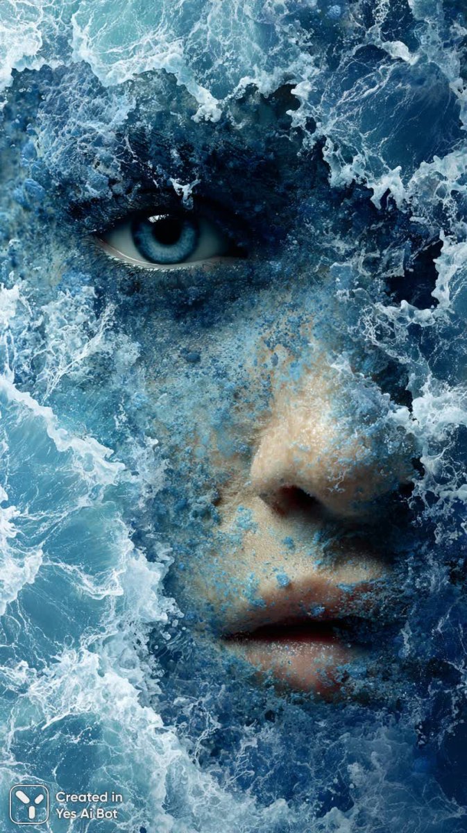 midjourney Лицо в океане: двойственная природа красоты и бури. Изображение из нейросети Миджорни