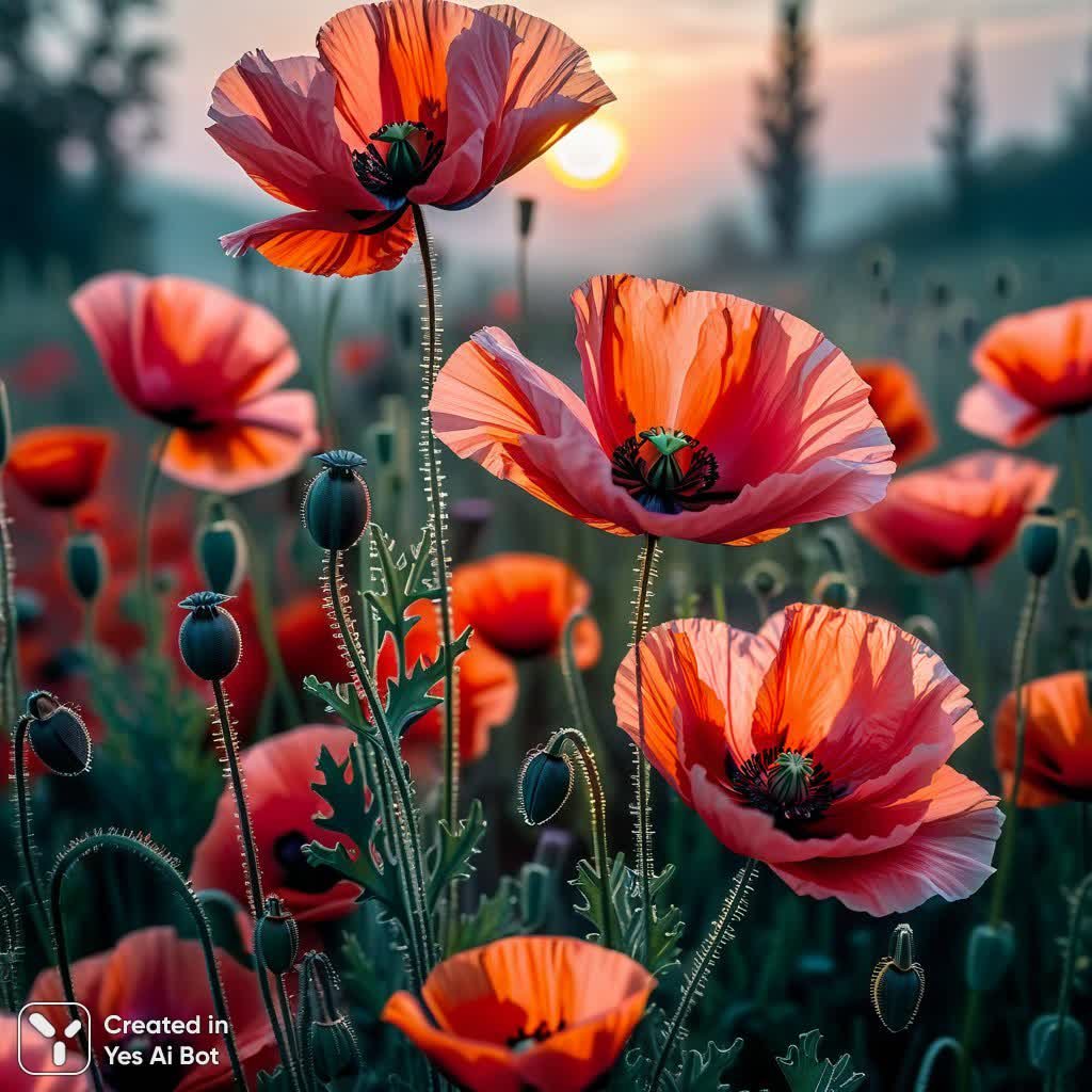 Розовые маки в стиле Фабио Сембранелли: рассвет сквозь туман и нежные оттенки - Изображение, созданное нейросетью Stable Diffusion