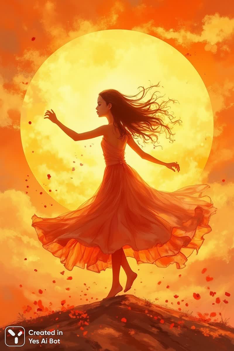 Изящный силуэт прекрасной девушки, словно сотканный из света и тени, запечатлен в стремительном танце на фоне величественного солнца. Ее роскошные волосы развеваются, вторя движениям струящегося, волнистого платья, ниспадающего до самых ног. Теплая цветовая палитра создает атмосферу уюта и безмятежности, подчеркивая грациозность фигуры и легкость каждого жеста. Мелкие хлопья, словно золотая пыльца, порхают в лучах солнца, добавляя изображению волшебства и воздушности. Цифровая графика высокого разрешения (1024k) позволяет передать мельчайшие детали – от переливов света на ткани до тонких нюансов выражения лица, создавая ощущение реальности и погружая зрителя в мир красоты и гармонии. Картина излучает энергию жизни, вдохновляя на творчество и даря ощущение радости и восхищения перед величием природы и красотой человеческого тела. Изображение выполнено в стиле фэнтези, сочетая реализм с элементами фантазии, что делает его уникальным и запоминающимся произведением искусства. Это визуальное воплощение мечты о свободе, легкости и безграничной энергии