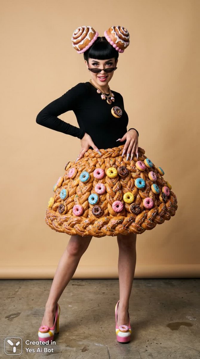 Сладкий бунт: мода и выпечка в ярком образе современной девушки - Картинка из нейросети Nano Banana