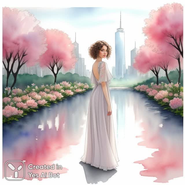 Романтичный образ: Мода и нежность в городском пейзаже - Картинка, сгенерированная нейросетью Stable Diffusion
