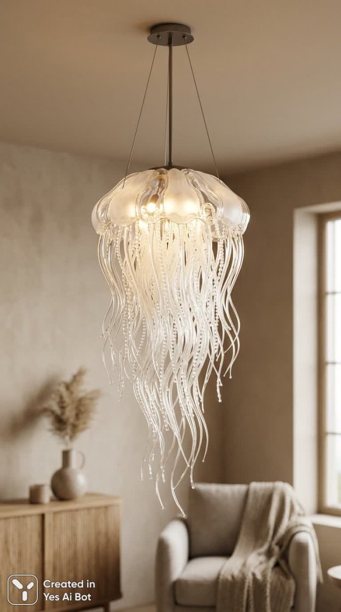 nanobanana Изящная люстра-медуза: современный акцент интерьера и уютное освещение. Картинка из нейронной сети Nano Banana